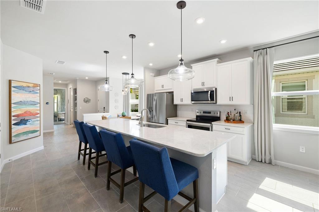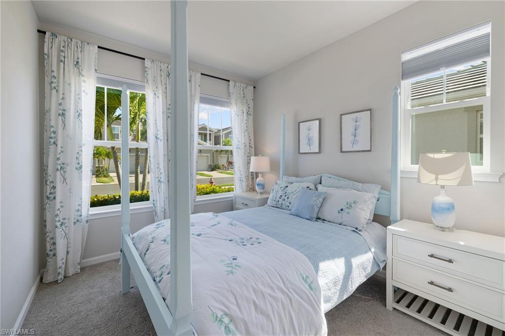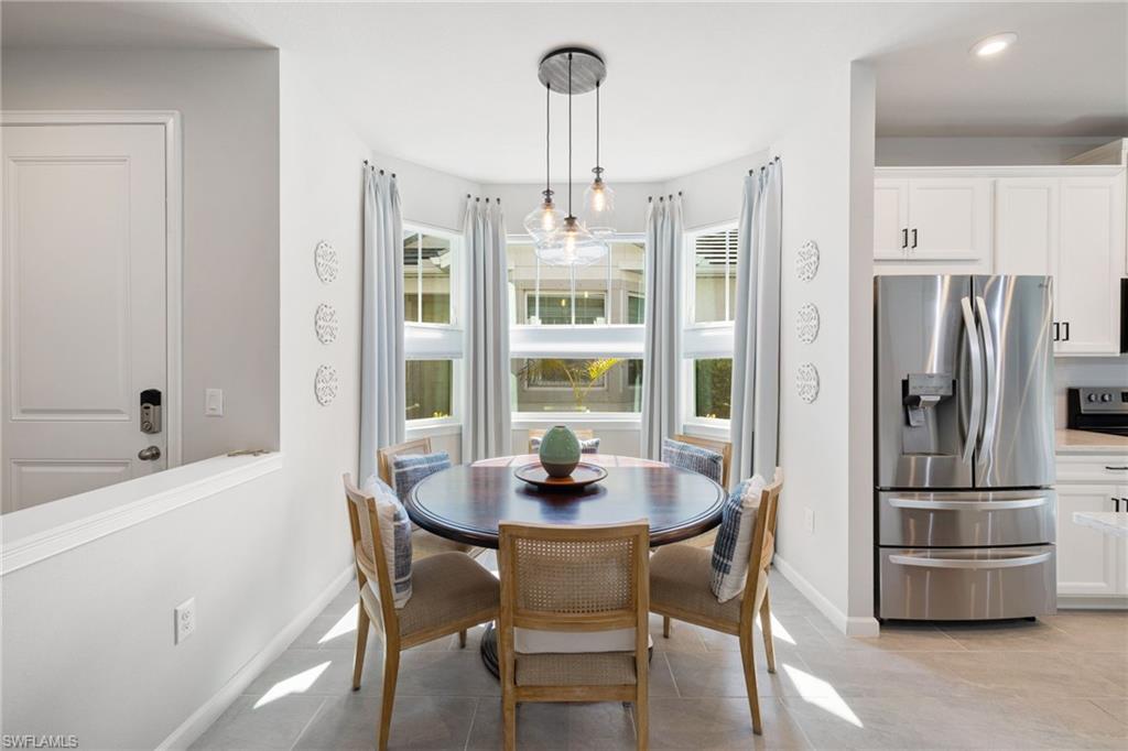 Welcome to your oasis at this bright end unit in Naples, FL! This charming home features 2 bedrooms and a versatile den/flex space, 2 full baths, along with the largest lanai floor plan in the community. With a two-car garage and a private patio, comfort is at your fingertips. Enjoy modern lighting and stationary draperies in the living area, complemented by a large island in the kitchen. Ideally located, you're less than a mile from the National Pickle Ball center, near the Botanical Gardens, and just less than 10 minutes from 5th Avenue and pristine white sandy beaches. Community amenities include a resort style pool and hot tub, gym, and dog park. This ground-floor gem nor the community has never been flooded. Embrace the comfort and convenience of this exceptional home!