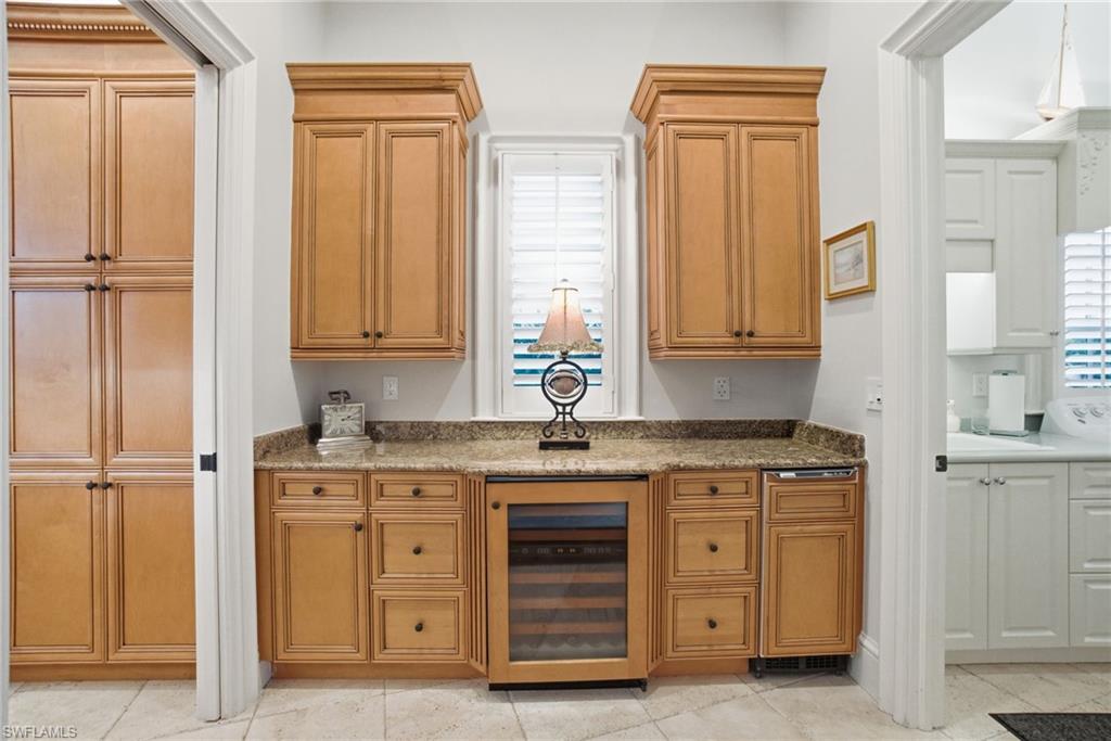 This stunning single-family home in the Estuary at Grey Oaks perfectly situated on the 15th hole offers the perfect blend of luxury, privacy, and entertaining space along with the premier Grey Oaks lifestyle. Featuring 3 bedrooms, 2 full baths, and 2 partial baths, the thoughtfully designed split floorplan ensures privacy for residents and guests alike, while expansive common areas — both indoors and outdoors — create an ideal flow for gatherings and everyday living. Step inside to find elegant wood flooring throughout, enhanced by sophisticated architectural details including ceiling beams and graceful arched doorways. A premium Sonos surround sound system elevates the entertainment experience in every room. The gourmet kitchen is a chef’s dream, centered around a massive peninsula perfect for casual meals and entertaining. High-end appliances include a built-in paneled Sub-Zero refrigerator, Professional-grade Viking 6-burner gas range with double oven, a new paneled Bosch dishwasher, a new GE Monogram microwave, a Dacor warming drawer, an additional prep sink, and a dedicated butler’s pantry complete with a wine fridge and extra ice maker. The luxurious primary suite boasts breathtaking wide golf course views, french doors opening directly to the pool, a spa-like en-suite bath with dual sinks, two generous walk-in closets, and an extra half bath convenient to the pool area. A private coffee bar with sink and beverage fridge adds everyday indulgence. The second bedroom suite offers similar luxury with dual sinks, a separate jacuzzi soaker tub, private water closet with bidet, walk-in closet, its own coffee bar with sink and beverage fridge, and direct private access to the garage. The third bedroom that the current owner has configured as a stately library features direct pool access and a cozy gas fireplace for added charm. Outside, the recently renovated caged 49-foot lap pool and spa is the centerpiece of resort-style living, complete with new pool lighting, gas pool heater, gas fireplace, and a fabulous outdoor kitchen equipped with grill, prep sink, and refrigerator — perfect for al fresco dining with panoramic golf course views. Additional highlights include impact resistant windows and doors, a newer 2019 roof, custom landscape lighting, and a spacious garage with two full bays plus a dedicated golf cart space, epoxy flooring, and custom storage. This exceptional residence combines timeless elegance, modern upgrades, and prime location — a rare opportunity in one of Naples’ most sought-after communities. Grey Oaks has amazing amenities, including a 30,000 sq. ft. Wellness Center and Spa, resort pool, three golf courses, two clubhouses, three restaurants, a new pickleball center, bocce courts, tennis facilities, and a vibrant social scene. Ideally located just minutes from Naples’ pristine beaches, downtown, shopping, and dining, this home offers the perfect balance of luxury, comfort, and convenience.