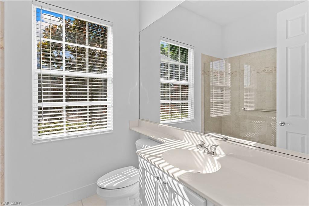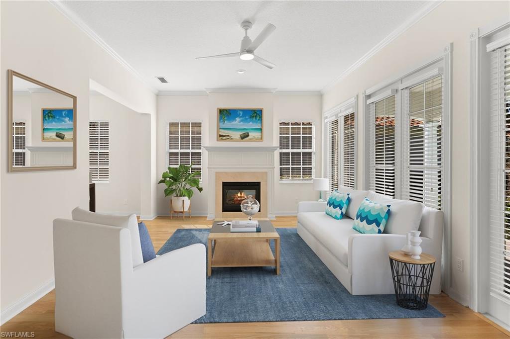 In the amenity-rich Island Walk community in Naples, this four-bedroom, three-bath residence offers 2,913 square feet of well-designed living space. The open concept floor plan seamlessly connects the living and dining areas, featuring a fireplace and large sliding glass doors that lead to a screened lanai with a private pool and water views framed by mature landscaping. The updated all-white kitchen includes a seated breakfast bar, an eat-in area and a pass-through to the dining room. The spacious primary suite provides direct access to the pool area and includes two closets, one walk-in, dual vanities, two toilets, a soaking tub, a walk-in shower and a seated vanity. Freshly painted with updated lighting, the residence is move-in ready. The outdoor living space includes a large, screened pool, covered dining area, room for lounge chairs and a front patio ideal for morning coffee. The property features a newer roof and full hurricane protection with no history of flooding, according to the owner. Island Walk offers extensive amenities including a town center, clubhouse, fitness center, resort-style and lap pools, tennis and pickleball courts, post office, gas station and scenic walking paths. This home delivers a private, peaceful setting with immediate access to one of Naples sought-after communities.