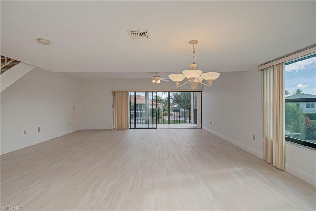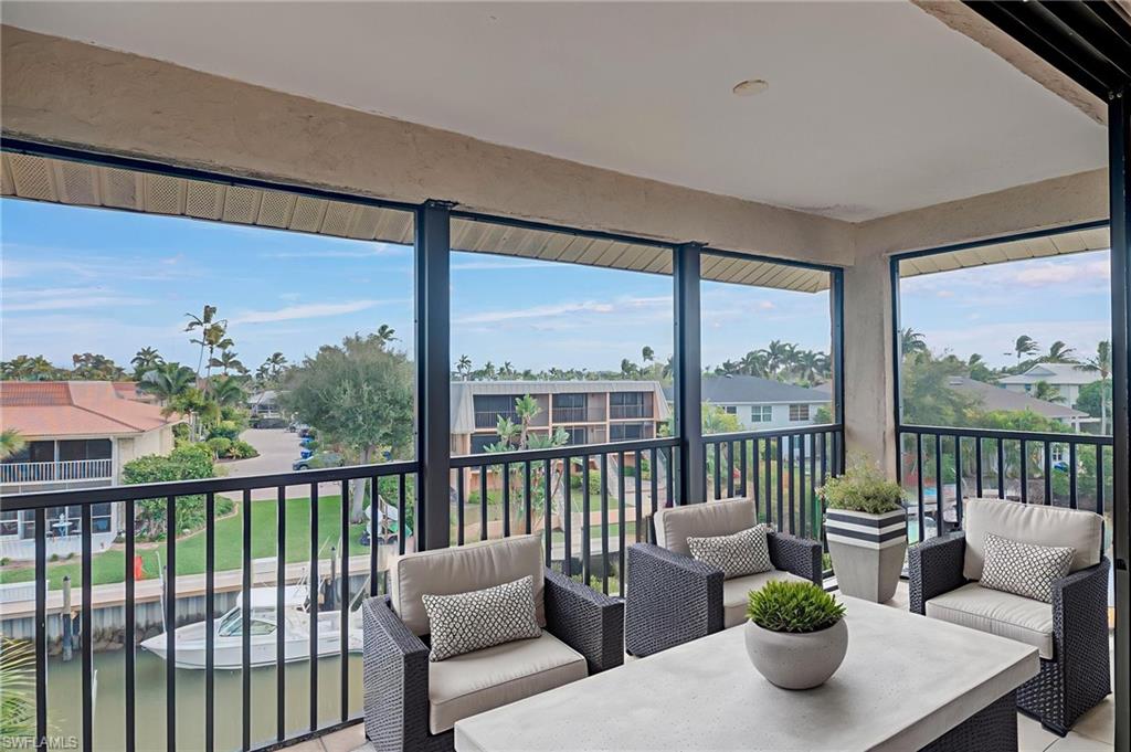 Bridge-free Gulf access meets true condo convenience: this spacious 3-bedroom, 2.5-bath, two-story residence offers approx. 1,835 sq ft and includes an assigned 40’ boat slip with water and electric at the dock. The oversized living room opens onto a screened waterfront balcony overlooking the canal, and the open kitchen features bright shaker cabinetry, stone counters, stainless steel appliances, generous storage, and a dedicated laundry room. Floor plan features multiple balconies for indoor-outdoor living, with a powder bath on the main level and all bedrooms upstairs. Clam Court is a tucked-away waterfront community in Oyster Bay featuring a community pool and clubhouse/community room, plus a fish-cleaning station and BBQ/picnic area—ideal for boating days and casual waterfront living. Enjoy bridge-free access out to Naples Bay and the Gulf, with an unbeatable in-town location just minutes to Fifth Avenue South, downtown Naples, and the beaches. Virtual Staging is used in some photos.