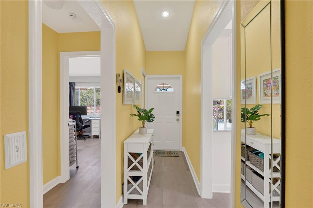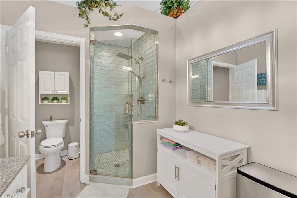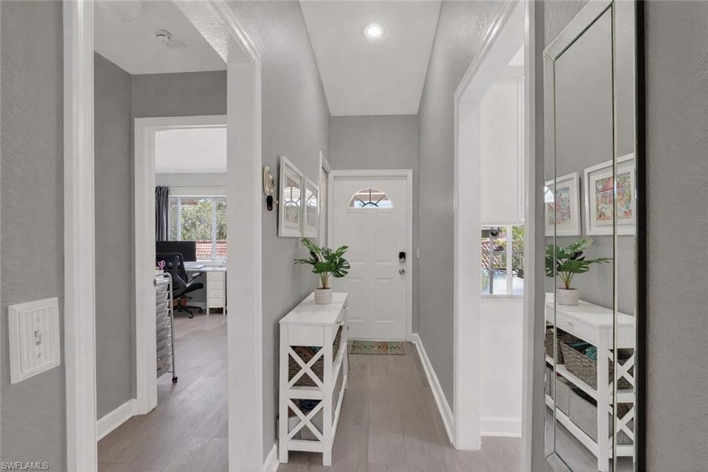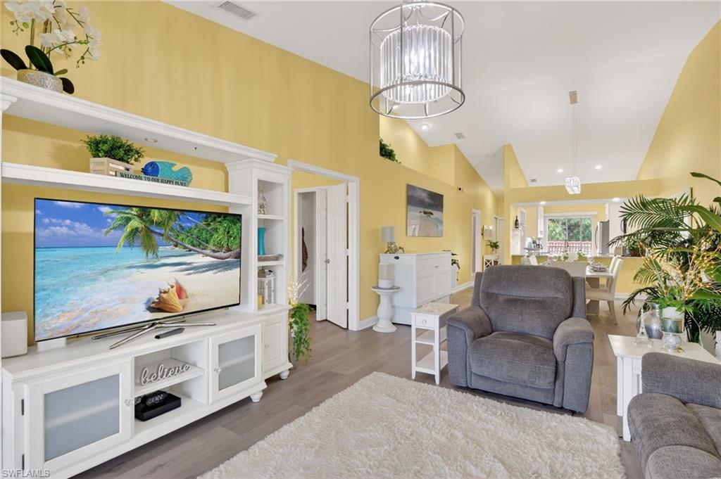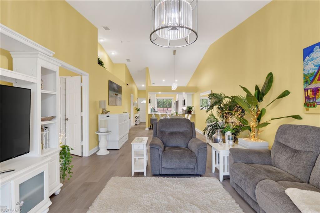 This beautiful newly remodeled two-bedroom, two-bathroom condo offers stunning lake views and a resort-style living experience. The kitchen features stainless steel appliances, elegant granite countertops, soft-close drawers, and additional cabinetry for ample storage. Throughout the condo, uniform new vinyl plank flooring enhances the modern aesthetic, with no carpeting, complemented by new baseboards and shoe molding. Recent upgrades include brand new screens on both lanais, a new water heater, and a new AC unit installed in 2024, ensuring comfort year-round. All plumbing lines have been replaced with new PEX waterlines, and the entire interior has been freshly painted. The master bedroom boasts an upgraded closet for enhanced organization, as well as a beautiful, remodeled bathroom. Additional improvements include a new washer and dryer set and updated lighting fixtures throughout the unit. You will see a couple AI generated photos with gray walls where as the rest of the main living areas show yellow walls. This is because they are willing to have it painted. This condo combines luxury finishes with practical upgrades, making it an exceptional opportunity for comfortable and stylish living. Less than 5 miles to Olde Naples restaurants and beaches you don't want to miss this opportunity. Schedule your showing today.