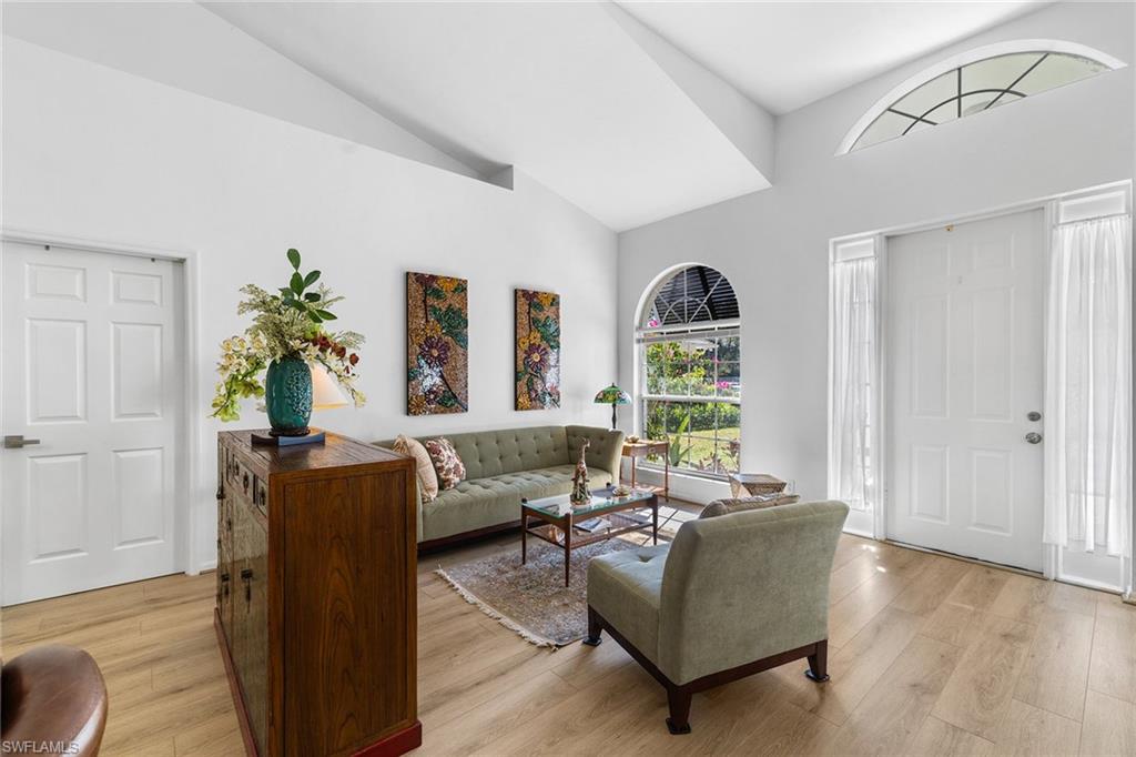 Completely renovated and better-than-new three-bedroom, two-bath concrete block home on a sprawling 1.14-acre fully fenced and gated lot in Naples with no HOA fees! This move-in-ready residence features high-end finishes throughout, including soaring 10-plus-foot volume ceilings, elegant light-toned plank flooring, and exquisite artful molding in the living and dining rooms. The gourmet eat-in kitchen features a stunning waterfall quartz island, beautiful wood cabinetry and a whole-home reverse osmosis water system for pristine drinking water. Additional highlights include a two-year-old roof, new windows on main bedroom and bath, fully renovated primary and guest baths, attached two-car garage with a newer garage door, newer washer/dryer included, and beautiful furnishings negotiable. The deep, private lot offers ample space for a pool, shed or guest house. Enjoy peaceful living with high-speed internet, surrounded by nature and wildlife. Prime location, less than one mile to Golden Gate Boulevard and new Fire Station 74/EMS, five minutes to Everglades Square mall, 10 minutes to Publix/CVS and new tractor supply store. Nearby access to the 24,000-acre Wildlife Refuge and Gore Nature Center with scenic trails through cypress forests and ancient limestone landscapes. Experience luxury, freedom and the untouched beauty of Florida living.