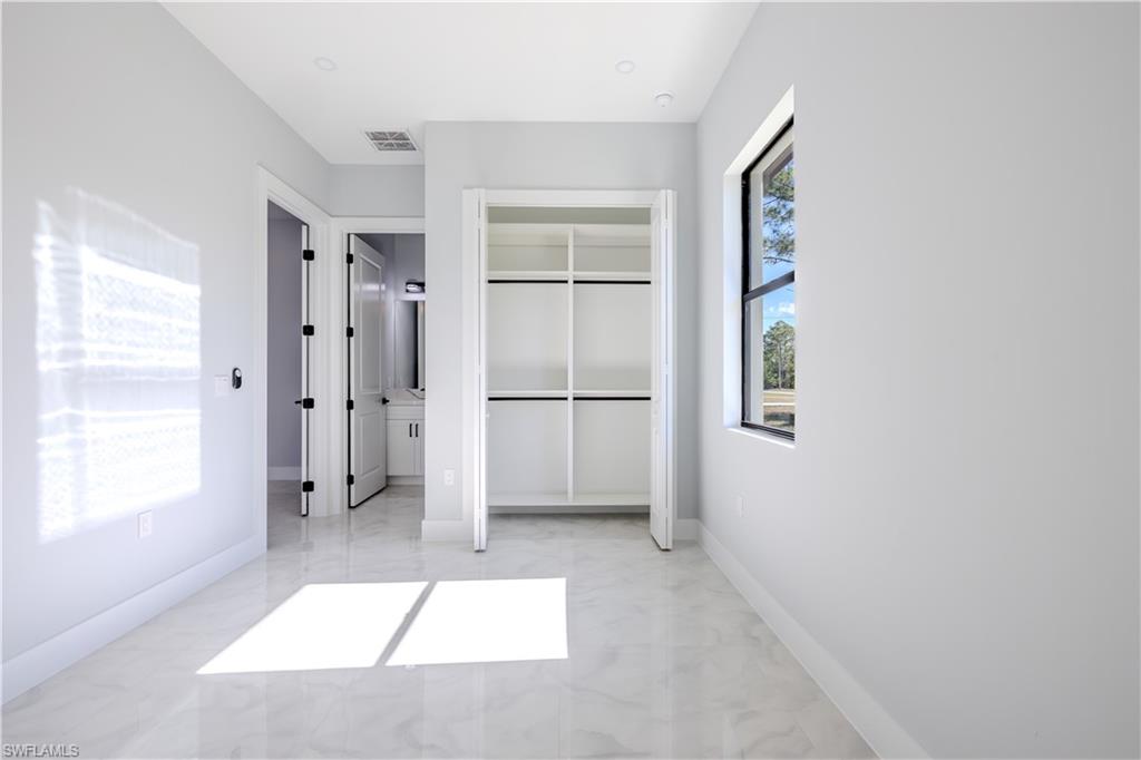 Discover an unparalleled lifestyle in this brand-new architectural gem, perfectly nestled in the heart of Golden Gate Estates. Spanning 4 spacious bedrooms and 3 bespoke bathrooms, this home is defined by its meticulous craftsmanship. The private in-law suite, featuring its own dedicated entrance, provides a sophisticated solution for multigenerational living or premium rental potential in one of Naples’ fastest-growing equity hotspots. Every detail has been curated for the discerning buyer: premium flooring, modern fixtures, and a kitchen that serves as the heart of the home. Organization is elevated by custom closet systems in every room, while the expansive lot offers rear vehicle access—unlocking endless potential for a private workshop, or a custom pool oasis. With no HOA restrictions, this is more than a home; it is a canvas for your ultimate lifestyle.