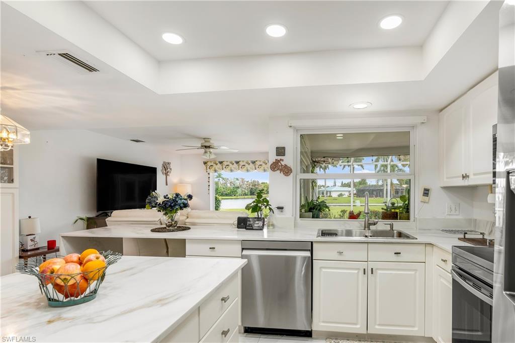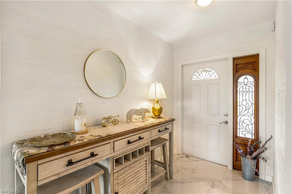 Nestled on a quiet cul-de-sac in the Lakewood community, this home offers privacy while being just minutes from downtown Naples and the beaches. Overlooking a beautiful lake, the large, screened lanai lends itself to lazy sunset evenings or large entertainment opportunities. Boasting four bedrooms and two baths in a split bedroom floor plan, the home features a formal living room with a fireplace and a formal dining room. The kitchen and family room offer stunning lake views. The owner's suite, with his and her closets features access to the fourth bedroom that can flex as a nursery, office, or private sitting area. This home has been gently used and ideally maintained with a new roof installed in 2023.