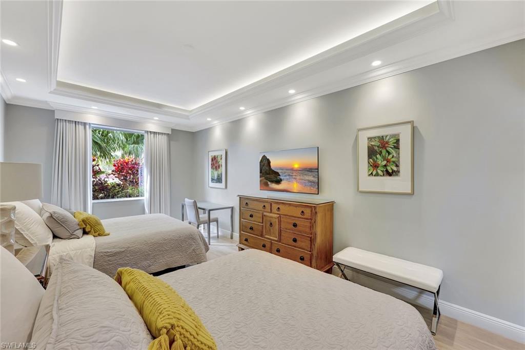 Introducing an exquisite coastal showplace at The Coronado—where SWEEPING GULF & SUNSET VISTAS, refined modern design, and Pelican Bay’s premier amenities converge in a rare offering of move-in luxury tower living. COMPLETELY REMODELED FROM TOP TO BOTTOM, this beautifully transformed residence blends contemporary elegance with smart and effortless everyday luxury. Thoughtfully redesigned interiors maximize function and flow, enriched by a curated palette of high-end finishes—from large-format porcelain tile flooring throughout to new custom wood soft-close cabinetry crowned with quartz countertops. Tailored window solutions, custom millwork, designer detailing and quality craftsmanship shape a sophisticated coastal aesthetic, while all-new mechanical systems, new appliances and RO filtration enhance comfort and efficiency. Every room frames panoramic Gulf views, with the great room and both bedroom suites opening through sliding glass doors to a spectacular 24-foot-wide sunset terrace—your front-row seat to nightly brilliance over the water. Light-filled living and dining spaces are complemented by a versatile casual/flex area off the brand-new kitchen, ideal for breakfast, lounging, or work-from-home ease. Newly finished bathrooms showcase dual showerheads, custom tilework and stylish design elements. Generous closets meet everyday storage needs, supplemented by an exclusive air-conditioned storage locker at garage level. For peace of mind, every window features impact-resistant glass, and the lanai is secured with storm shutters. A water leak detection system is association-managed throughout the building. For your convenience, assigned garage parking offers direct elevator access to your residential floor. At The Coronado, resort-style living is elevated by 24/7 CONCIERGE SERVICE, onsite management, a well-equipped fitness facility, sparkling swimming pool, hot tub, poolside BBQ grills, media center, boardroom, social room with bar & catering kitchen, and two guest suites; bicycle storage and direct beach boardwalk accessibility are available. Pelican Bay’s enviable lifestyle amenities include exclusive access to the PRIVATE BEACH CLUB, with two beachfront restaurants and full-bar service, private trolley service, complimentary beach chair, umbrella, and cabana setup, and beachside fitness classes. Beyond nearly three miles of white-sand shoreline, residents enjoy two tennis centers, brand-new pickleball courts, a state-of-the-art fitness club with spa, sailing, canoeing and kayaking, miles of nature paths, and a lively community center with card games, classes and events. Optional memberships are offered at the renowned Pelican Bay Golf Club. Live moments away from Artis–Naples, Waterside Shops and Mercato – yet surrounded by the tranquility of the Gulf front and the vibrant lifestyle of Pelican Bay.
