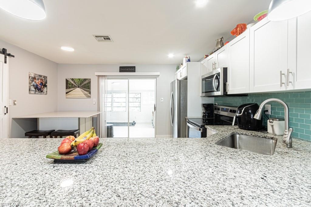 Move in ready waterfront home for sale in Bonita Springs. Did NOT flood in recent hurricanes. Completely remodeled open concept kitchen with granite countertops, breakfast bar, whirlpool appliances. Remodeled guest bathroom. Central air replaced in 2023. Metal roof replaced in 2021. One car garage, carport, large shed and outdoor patio. On a canal just off of Imperial River with gulf access for a small boat. Across the street from Bonita Middle School and a short walk/bike to all downtown Bonita Springs has to offer. Large air conditioned lanai used as a multipurpose room, currently has murphy bed, not included in living area square footage.