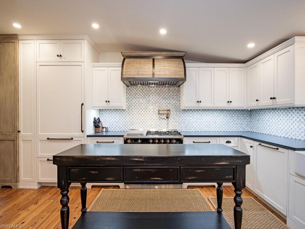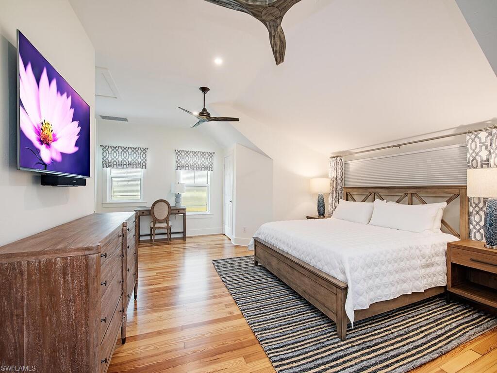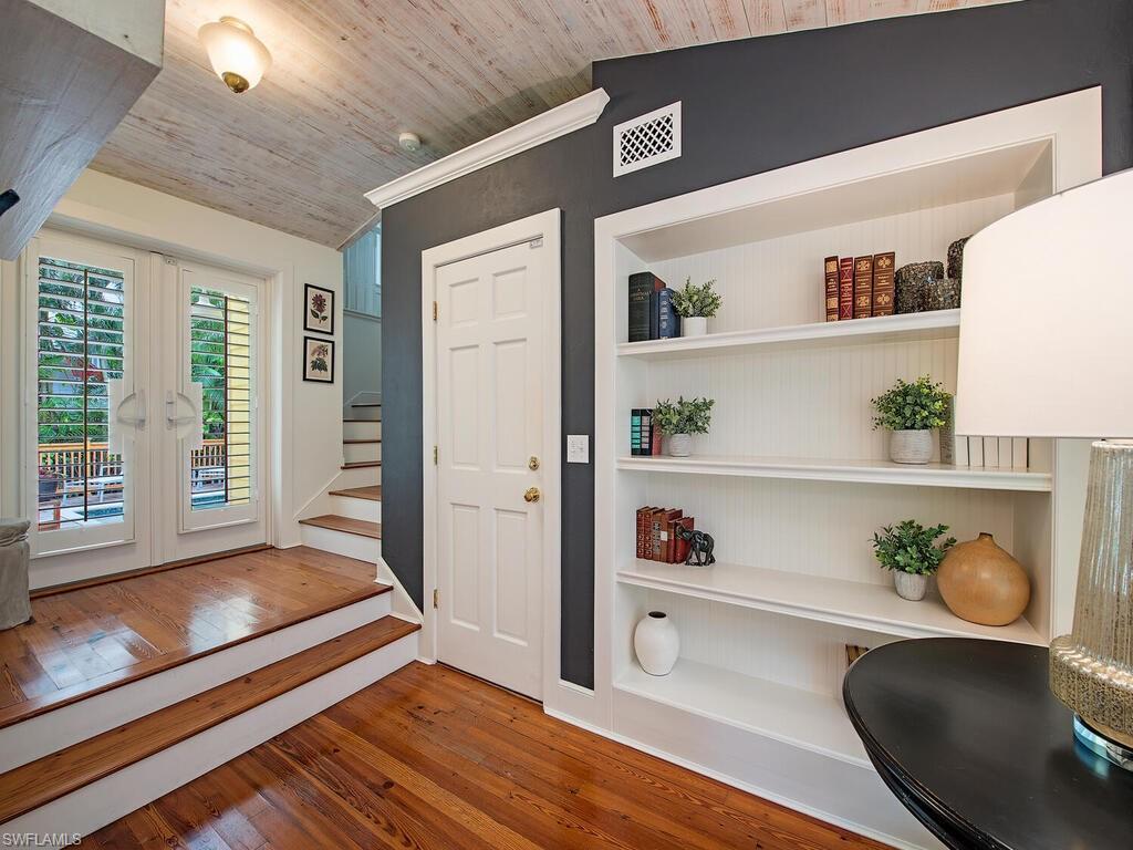 Filled with every ounce of warmth, character, and history, the 1929 Captain Parker House captures the dream of Olde Naples and is located just steps to Cambier Park, 5th Avenue South, 3rd Street South, and Naples' sugar sand coastline. Having been fully restored over the years to create a perfect marriage between history and modern-day elegances, the romantically-set cottage features a gracious front porch, old-growth heart pine flooring, a fireplace enveloped in hand-picked oyster shells, ship-lap walls, whimsical tiling, stunning soaking tub, grotto style pool, and Hardie board siding. A number of other luxurious features are encompassed, such as a chef’s kitchen outfitted with a Lacanche gas range, Sub-Zero refrigerator and wine cooler, as well as a whole-house generator, impact glass, and a metal roof. The remainder of the parcel is enveloped in lush tropical foliage and includes vegetation such as a 50' Royal Poinciana tree, birds of paradise, banana, coffee, and coconut trees, as well as gardenias.