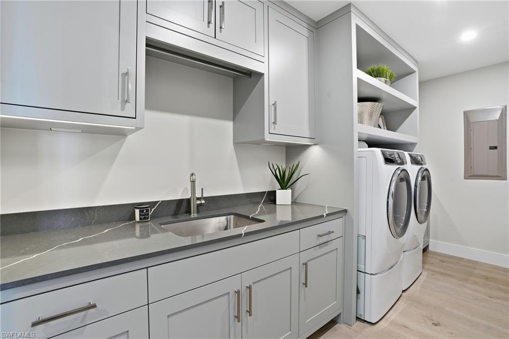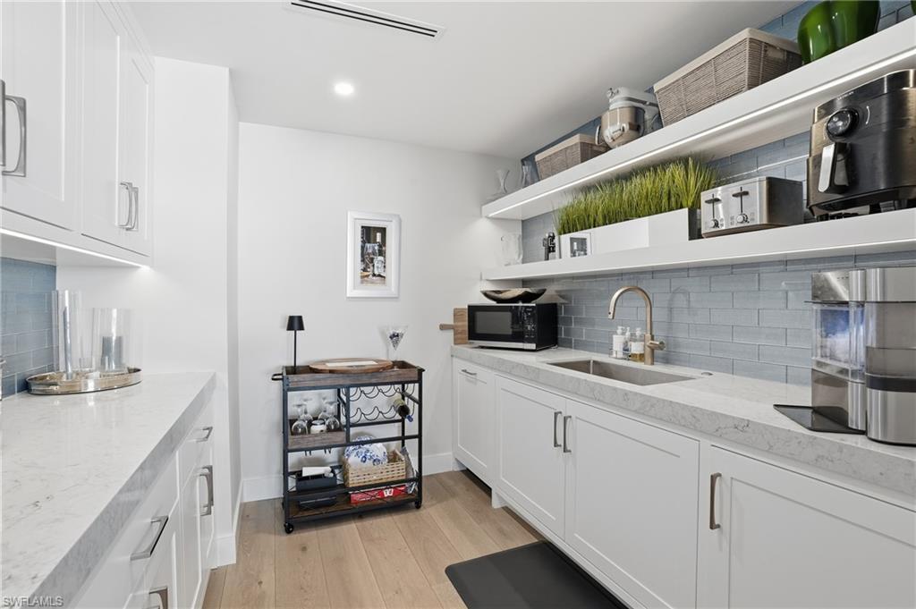 Walking into breathtaking, unobstructed views of the shimmering Gulf, this exceptional residence in Tower 400 delivers modern coastal luxury, blending sleek contemporary design with elevated seaside living. Located on the 19th floor in the highly desirable stack 6 end position, the home enjoys expansive ocean views and breathtaking vistas of the Naples coastline.Just one year old, this four bedroom, four bath residence is wrapped in floor to ceiling glass, creating a light-filled interior where the sea and sky become a constant backdrop. Designed by Ron Alose, the residence showcases high-end luxury upgrades throughout. Legno Bastone Italian white oak flooring flows seamlessly throughout home, complementing rich walnut cabinetry and custom built-ins. The gourmet kitchen is a chef’s dream, featuring Wolf and Sub-Zero appliances, natural gas cooking, sleek quartz countertops, and an oversized island ideal for entertaining. Three wine refrigerators ensure every gathering is perfectly hosted, while a discreet butler’s pantry adds exceptional functionality with an additional dishwasher and prep sink. The open-concept living and dining areas are anchored by a striking marble feature wall with an electric fireplace, creating an elegant yet inviting atmosphere. A custom walnut built-in bar enhances the entertaining experience, while expansive windows frame endless Gulf views and flood the residence with natural light. The private primary suite is a serene retreat, offering breathtaking water views and a spa-inspired bathroom with double vanities, a walk-in shower, a freestanding soaking tub, a dedicated makeup vanity, and a large custom built walk-in closet. Three of the four guest bedrooms feature en-suite bathrooms, and all bedrooms are outfitted with custom cabinetry in their closets, providing both luxury and functionality for family and guests alike. Step outside to the spacious outdoor patio, where panoramic views set the stage for unforgettable sunsets. A marble accent wall and electric fireplace transform this space into a true outdoor living room, perfect for year-round enjoyment. Residents of Tower 400 enjoy exclusive access to a stunning 7,500-square-foot rooftop terrace featuring a resort-style pool, built-in grills, ample seating areas, and a private outdoor fitness center. Kalea Bay’s world-class amenities continue at the clubhouse, home to two exceptional restaurants, Salt & Oak and Driftwood Café, along with a state of the art fitness center, full-service spa, hair salon, game room, two community pools including a dedicated adult pool and a family pool, and two vibrant outdoor bars. This exceptional residence offers a rare opportunity to experience refined high-rise living in one of Naples’ most prestigious coastal communities.
