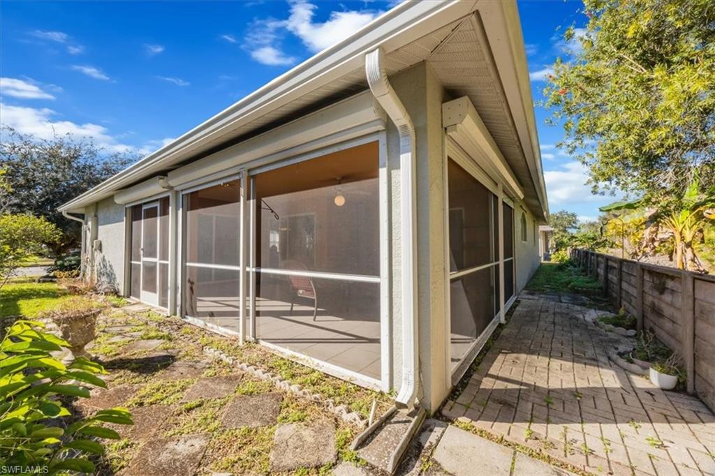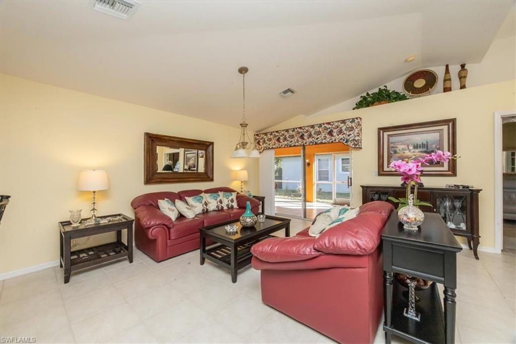 Welcome to this well maintained 2 bedroom plus den, 2 bath single family home offering approximately 1,500 square feet of comfortable living in the desirable 55+ community of Riviera Golf Estates in Naples. The versatile den features French doors and direct access to the screened lanai, making it ideal for a home office or guest space. Tile flooring flows through the main living areas, with carpeted bedrooms for added comfort. Step outside to a spacious screened lanai overlooking a private backyard with no rear neighbors, perfect for enjoying the Florida lifestyle. Built in 2000, this home is located in an active community with resort style amenities including a clubhouse, pool, fitness room, pickleball, tennis, bocce, shuffleboard, billiards, library, and more. Low HOA fees and a prime location just minutes from downtown Naples and the beaches make this a wonderful place to call home.