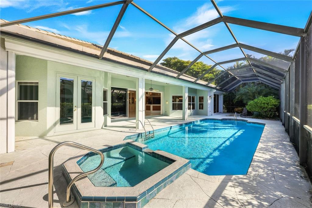 Beautiful 3 beds, 3 baths, Den, And 3 CAR GARAGE with Southern Exposure! This home is ready for your designing ideas. While so many older homes are all closed off, this home has an Open floorplan with Living and dining flowing through to the Family room with no walls to remove! Crown molding, large 18" glazed porcelain tile throughout living areas. New roof in 2019, new A/C 2025, new solar pool heater in 2020 and updated Guest bath and Master bath to name just a few of the recent updates. This home has a 3-car garage that is rather unique in that you have 2 car bays off the semicircular driveway, and a 3rd car bay that enters off of Pennyroyal Dr from the rear of the garage with a separate garage door. But total is a 3-car garage with lots of storage for all the toys like bikes, and beach chairs and tools. Perfect for the do it yourselfer! Custom built-in Entertainment Center along the Family room wall. The guest suites are on the opposite side of the home for total privacy with front guest bedroom having an adjoining guest bath, and the rear guest bedroom suite has a full bath that also opens to the pool area. Don't miss this best buy in Pelican Landing! Pelican Landing is located on 2400 acres west of US 41 and nestled along Estero Bay. Pelican Landing offers the most amenities for the lowest master HOA of any community in Lee or Collier counties. 12 Tennis courts with Full time Tennis director, Canoe & Kayak Club along Spring Creek with Canoes and Kayaks available for all residents, state of the art Fitness Center, Pickleball, Bocce Ball, and miles of biking and jogging trails. There are 36 holes of Championship golf designed by Tom Fazio at Pelican's Nest Golf Club with golf and Social memberships available on a short wait list.