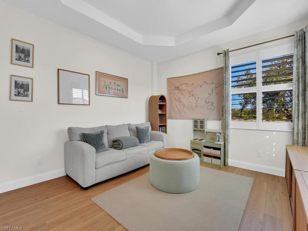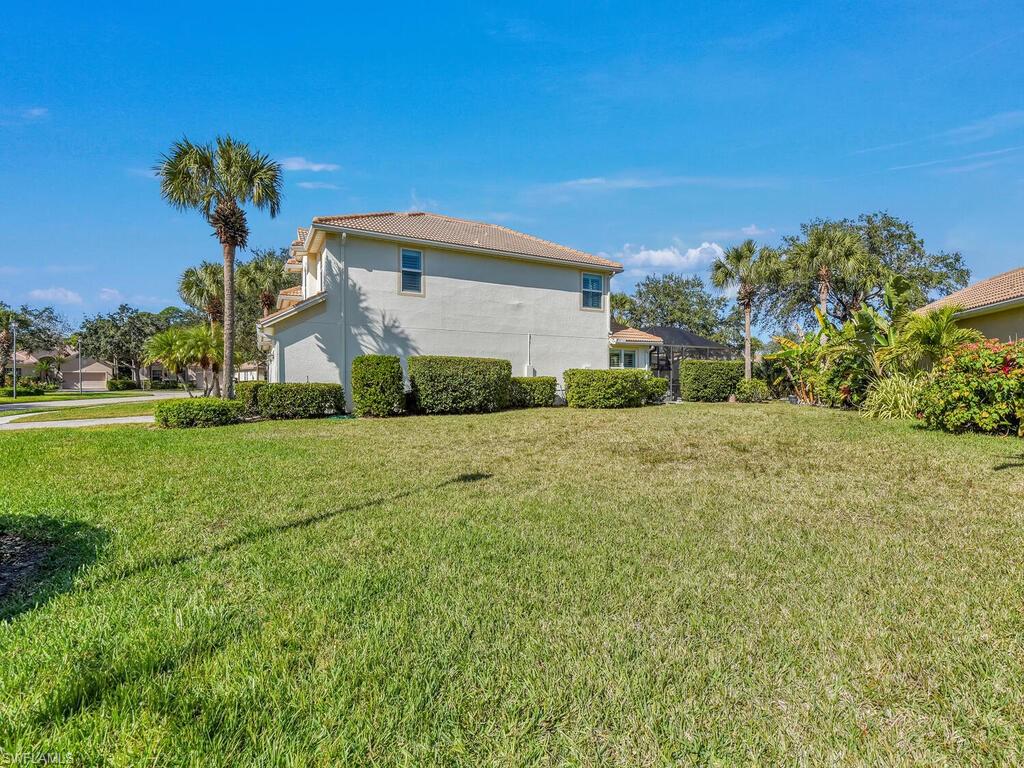 Experience this fully updated 4-bedroom plus den, 2.5-bath home on an oversized lot offering a spacious and comfortable layout in the highly desirable Madison Park community. 8 ft doors and soaring 20-foot ceilings in the main living areas create an airy, open ambiance that complements the home's soothing, earthy tones — a perfect blend of warmth and modern elegance. Ideally located just minutes from Naples' pristine beaches and with easy access to I-75, this residence combines serene coastal living with convenient connectivity. Updates include all new 8ft IMPACT ENERGY EFFICIENT SLIDERS and IMPACT ALUMINUM WINDOWS with argon gas, plantation shutters, luxury vinyl flooring throughout most of the home, fresh interior and exterior paint, NEW COUNTERTOPS, and stylish new tile work. The two-car garage features a new epoxy floor finish for a clean and polished look. The master suite, great room, and dining area open to a screened lanai with a sparkling pool and spa — perfect for relaxing or entertaining. Upstairs, you'll find two additional bedrooms, a full bath, and a versatile bonus room ideal as a fifth bedroom, home office, or game room.