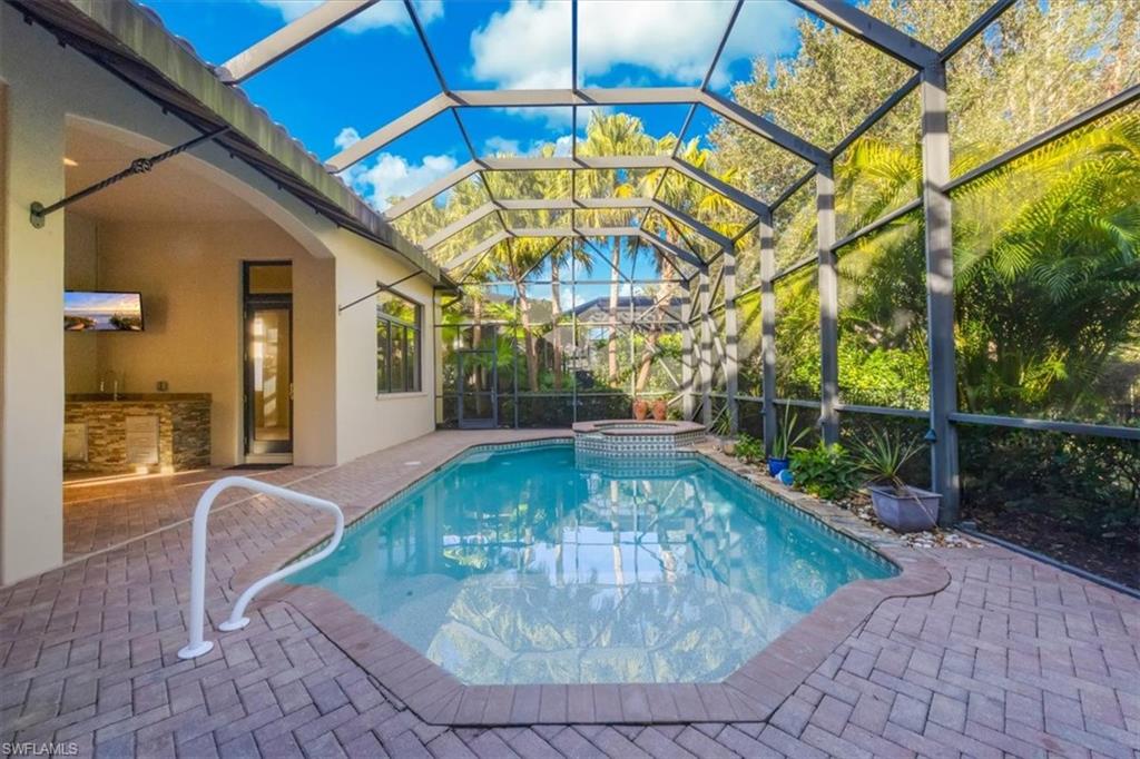 This exceptional value-added price per square foot single-family villa in Mediterra, offers remarkable character, charm, and lifestyle opportunity. Built by Taylor Morrison, the residence features classic stucco exterior finishes with stacked stone accents, a gated front courtyard with double-door entry, split garages, and lush, mature landscaping. Inside, soaring ceilings and neutral tile set on the diagonal enhance the main living areas, complemented by extensive millwork, window casements and banding, intricate ceiling details, and abundant designer lighting including chandeliers, sconces, and recessed fixtures. The gourmet kitchen is appointed with granite countertops, stone backsplash, GE appliances, natural gas cooktop, and a separate butler’s pantry with wet bar, cabinetry, and wine cooler. Dining options are plentiful with a large breakfast bar, informal nook, formal dining area, and outdoor dining. Expansive sliding doors open to a brick-paver covered lanai with upgraded summer kitchen featuring a natural gas built-in grill, outdoor beverage refrigerator, sink, granite counters, and storage, all overlooking the screened pool area with added awnings for shade. The private rear yard offers additional fenced space ideal for pets, gardening, or play, along with excellent privacy. The owner’s suite serves as a peaceful retreat with lanai access, dual walk-in closets, and a spacious en-suite bath with oversized vanities, makeup area, soaking tub, walk-in shower, private water closet, and neutral finishes. Two additional guest suites offer en-suite baths, generous closets, recessed lighting, and ceiling fans, while a separate den or office features hardwood floors, crown molding, and a flexible layout. Located within the prestigious Mediterra Golf & Country Club, residents enjoy resort-style living. Depending on your membership with Mediterra the opportunities are plentiful. 2 eighteen hole Tom Fazio–designed championship golf courses, driving range, training golf facility, tennis, pickleball, bocce, fitness and wellness center, scenic sidewalks, refined dining, and the newly renovated private gated Mediterra Beach Club on the beach features dining, bar service, pool, sundeck, and full cabana beach service, Mediterra is all conveniently close to Naples' dining, shopping, beaches, and RSW International Airport.