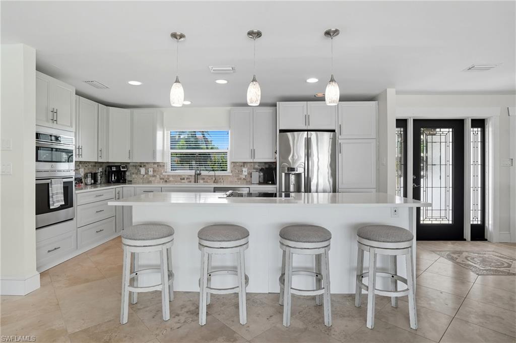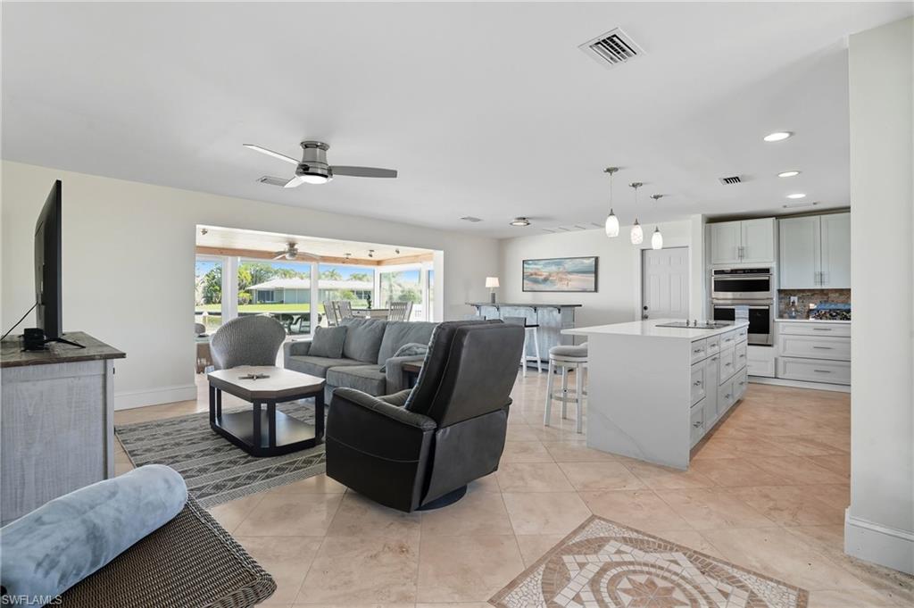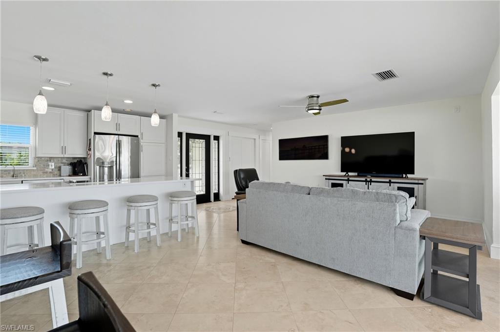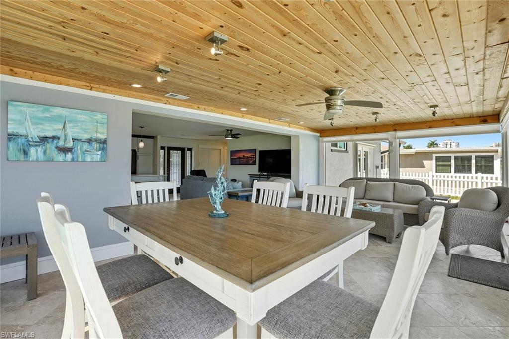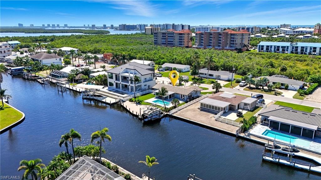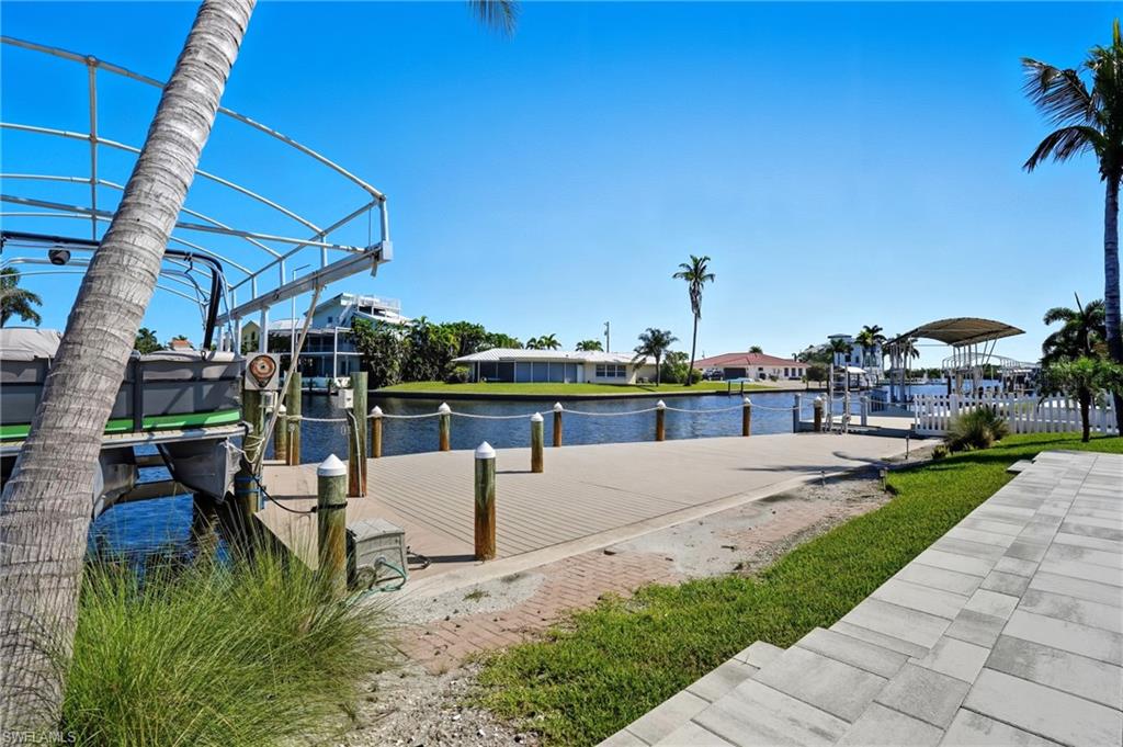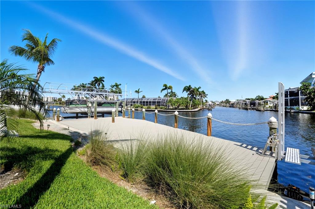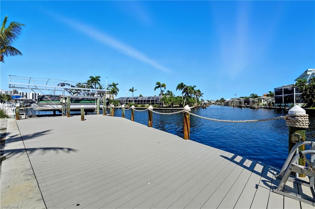 Panoramic Waterfront Views from this Amazing Pool home with Oversized Dock. Embrace the ultimate Florida lifestyle in this charming 2-bedroom, 2-bathroom single-family home, perfectly positioned on an 75 ft extra-wide lot with intersecting canals. Enjoy endless opportunities for outdoor recreation, whether it's fishing, boating, kayaking, or simply soaking in the sights and sounds of local wildlife from your own backyard. For boating enthusiasts, a 10,000 lb boat lift is already in place, ready to launch you into all your water adventures. With direct access to the canals, you'll have the convenience of enjoying the waterfront year-round. Located in the highly sought-after Fairview Isles community, this home is just minutes from Fort Myers Beach's south end, Bonita Springs, and Naples. The Fort Myers International Airport is also a short drive away, making travel a breeze. Dining, shopping, and entertainment are just around the corner at the Santini Marina Plaza, and with deeded beach access, you’ll have the freedom to stroll along the shoreline at your leisure. Whether you're seeking a peaceful retreat or a base for your coastal explorations, this property offers the perfect blend of comfort and potential to fully embrace the waterfront lifestyle.Don’t miss your chance to own this incredible piece of paradise!