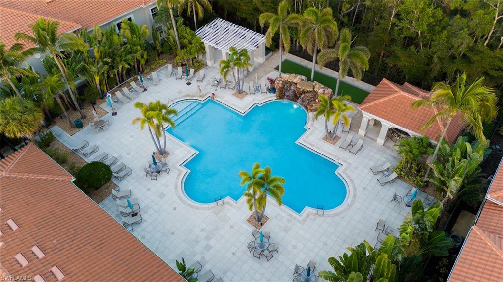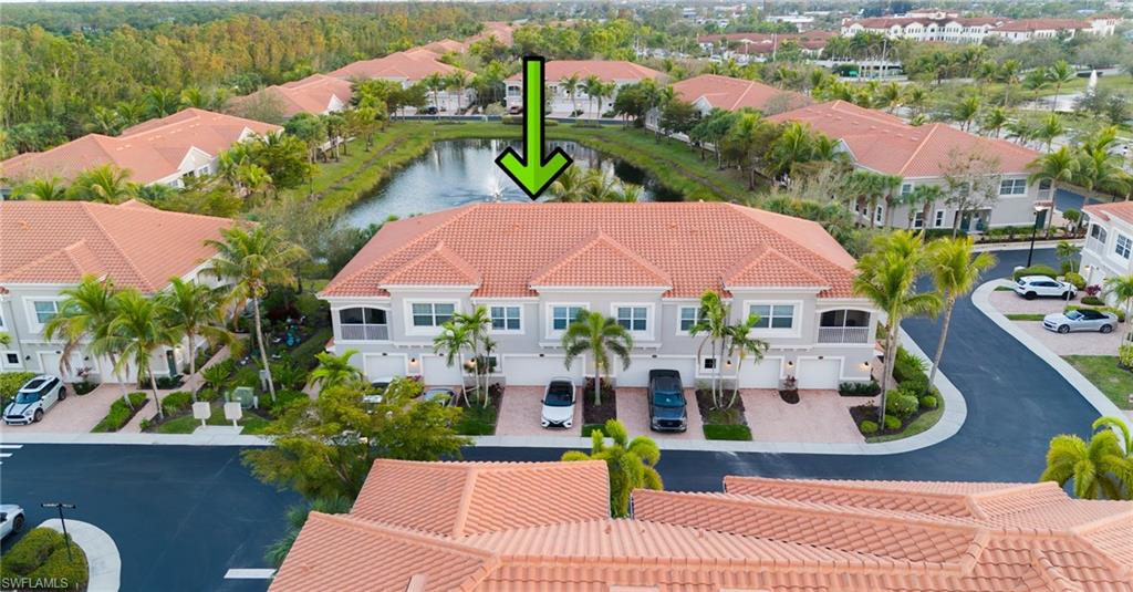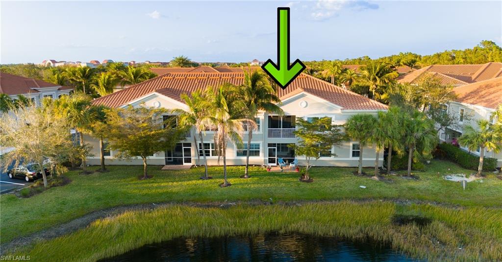 Rarely Available FIRST-FLOOR 2+Den Condo with EXPANSIVE 2.5-Car Garage & BREATHTAKING LAKE VIEWS! Enjoy serene moments on your extended paver patio or screened lanai, with stunning views of the lake and fountain, all enhanced by southern rear exposure. Situated directly across from the community clubhouse and pool, this meticulously maintained Osprey ground-floor unit features an open great room layout with split bedrooms, including 2 bedrooms, 2 baths, and a den with doors for added privacy. Key highlights include luxury vinyl plank flooring throughout, plantation shutters, 42" wood cabinetry with under-cabinet lighting, and stainless steel appliances. The spacious kitchen boasts a large counter-height island, granite countertops, and a beautiful tile backsplash. Every fan and light fixture has been upgraded. This immaculately well kept condo has a fresh, modern feel. Located within Mirasol, a gated, maintenance-free community of 200 units, you’ll be within walking distance of Coconut Point Mall! The condo fees cover cable, internet, insurance, exterior maintenance, and water. Mirasol offers a range of amenities, including a clubhouse, fitness room, billiards, resort-style pool with a cascading waterfall, and a separate covered spa. Conveniently close to the new Lee Health facility, US 41, and less than 20 minutes from RSW airport and beautiful Gulf beaches! Don't miss out on this gem!