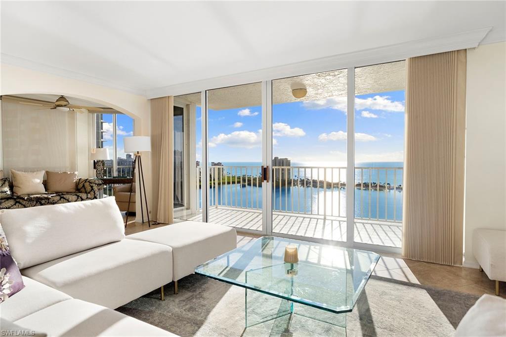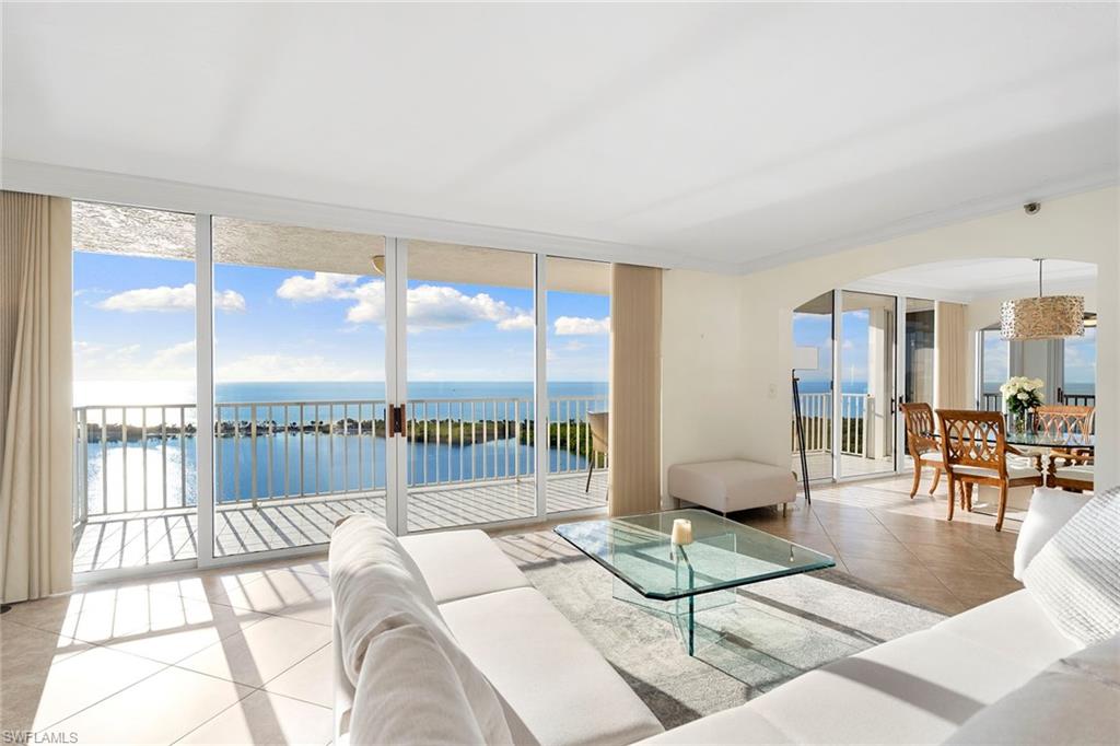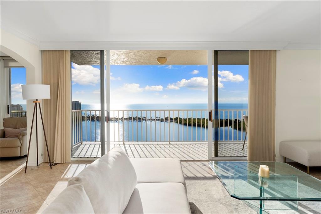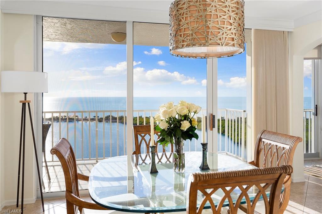 Atop the exclusive Pelican Bay community, this desired 18th-floor St. Nicole condominium unit offers a spacious living plan, panoramic views of the Gulf and a luxury lifestyle. This is a center, high-floor 01 unit that rarely comes on the market. The 2,200 square feet encompass the two-plus-den or three-bedroom, a huge main bath and guest bath, with flexible living space for home office and study. The oversized terrace is a spot for watching spectacular sunsets over the Gulf, with herons flying across the mangroves. Many new upgrades include dual vanities, shower doors, Levolor window coverings, appliances, LVP, an air-conditioning system and entire unit is freshly painted. St. Nicole is finishing a complete remodeling with designer renovations of the building's lobby, pool and Jacuzzi, gym and multipurpose social rooms. Downstairs, a tram takes you to the private Pelican Bay beaches where lounges and umbrellas await. Dine beachside at private restaurants and bars. Take out a kayak or sailboat or just watch the dolphins and shore birds. You can participate in Pelican Bay's tennis, pickleball, fitness center, new community center and social activities. You can walk or bike to the Naples Philharmonic, Baker Museum and luxury shopping, and dining at the beautiful Waterside shops. Domestic/international airport 25 minutes away.