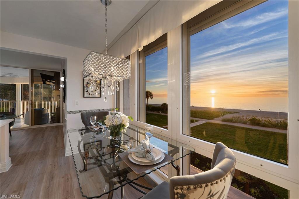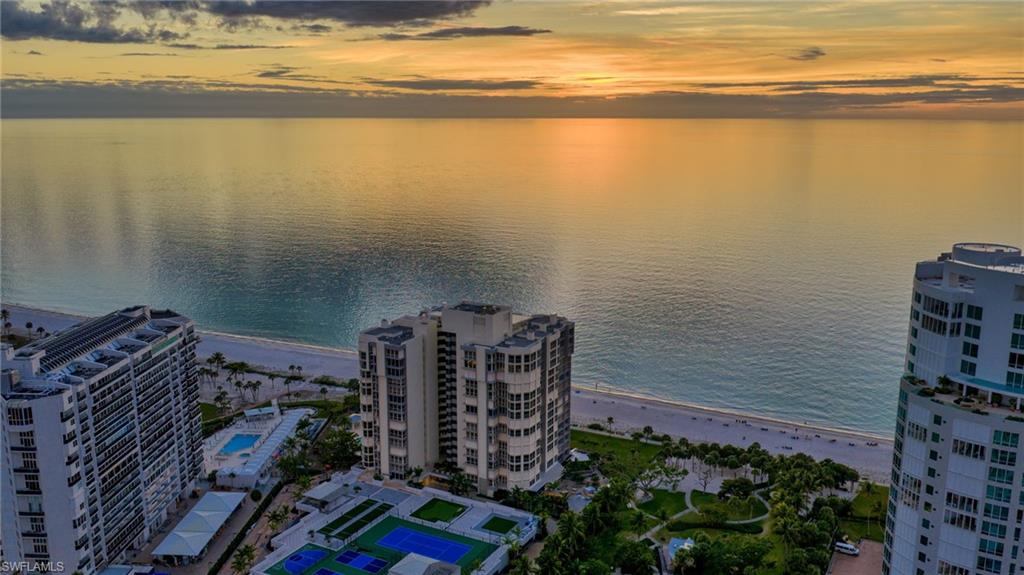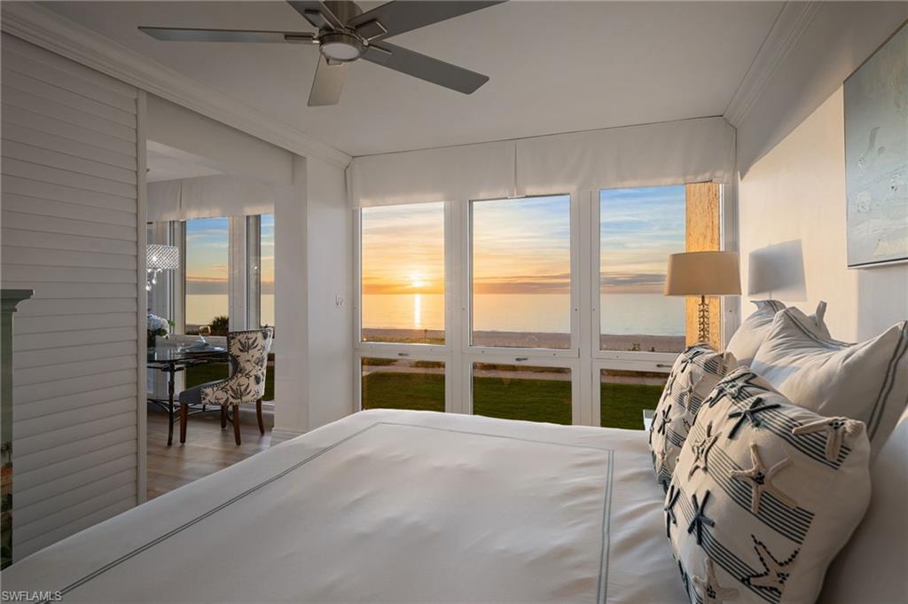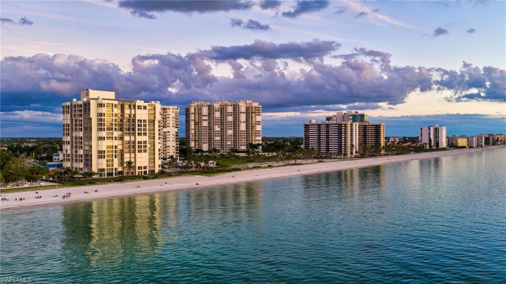 Ideally located directly on the beach in Naples, this exceptional condominium offers an effortless coastal lifestyle defined by refined living, timeless sophistication, and immediate access to sun, sand, and Gulf breezes. Encompassing 2,565 square feet of thoughtfully designed living space, this three-bedroom, three-bath residence is ideally suited as a second or third home and is offered furnished for immediate enjoyment. The interior has been tastefully refreshed to reflect a light, relaxed elegance. Wide-plank LVT flooring flows throughout the main living areas, while sliding glass doors bathe the residence in natural light and open seamlessly to the lanai. The spacious kitchen features quartz countertops, abundant cabinetry, and a sleek electric range—well suited for both casual living and entertaining visiting family and friends. The primary suite serves as a private retreat, offering custom dual walk-in closets, smart-home adjustable blinds, and a beautifully reimagined bath with dual vanities, generous storage, a large soaking tub, walk-in shower, and private water closet. Two guest suites provide comfort and privacy, one with smart-home adjustable blinds and a walk-in shower, and the other featuring sliding plantation shutters, a built-in wooden desk, and a shower/tub combination. Additional highlights include hurricane shutters throughout the residence, an updated laundry room with new countertop and cabinetry, one assigned parking space, and a private storage locker. The southwest-facing lanai captures tranquil Gulf views over the pool and beach, enhanced by new outdoor furnishings and a ceiling fan—an inviting setting for morning coffee or evening sunsets. The building has undergone extensive renovations, elevating both its interiors and resort-style amenities. Residents enjoy a refreshed lobby, common areas, social room, guest suites, beach chair storage, and mail room. Outdoor amenities include a beautifully updated pool area with lounge chairs, umbrellas, gas grills, and a fire pit. Above the garage, a fully amenitized recreation deck offers pickleball and tennis courts, a putting green, bocce ball, yoga station, shuffleboard, half-court basketball, additional grilling areas, and a full building generator—providing peace of mind and year-round enjoyment. This is a rare opportunity to own a move-in-ready beachfront residence in one of Naples’ most desirable coastal settings—where luxury, convenience, and effortless living come together beautifully. Boaters, please inquire about the separately available, seller-owned B13 boat slip at the newly refurbished Venetian Bay slips, located just north of Venetian Village. The slip measures 12'6" in width and accommodates vessels 35 feet or more in length, and is equipped with a new remote-controlled 16,000-lb dual-motor lift—an exceptional complement to this refined beachfront lifestyle. Your winter this year could be so peaceful, enjoying these incredible views...welcome home!