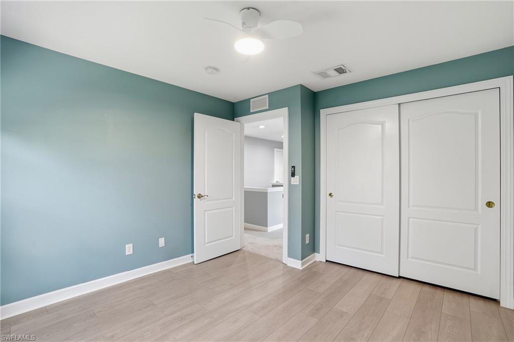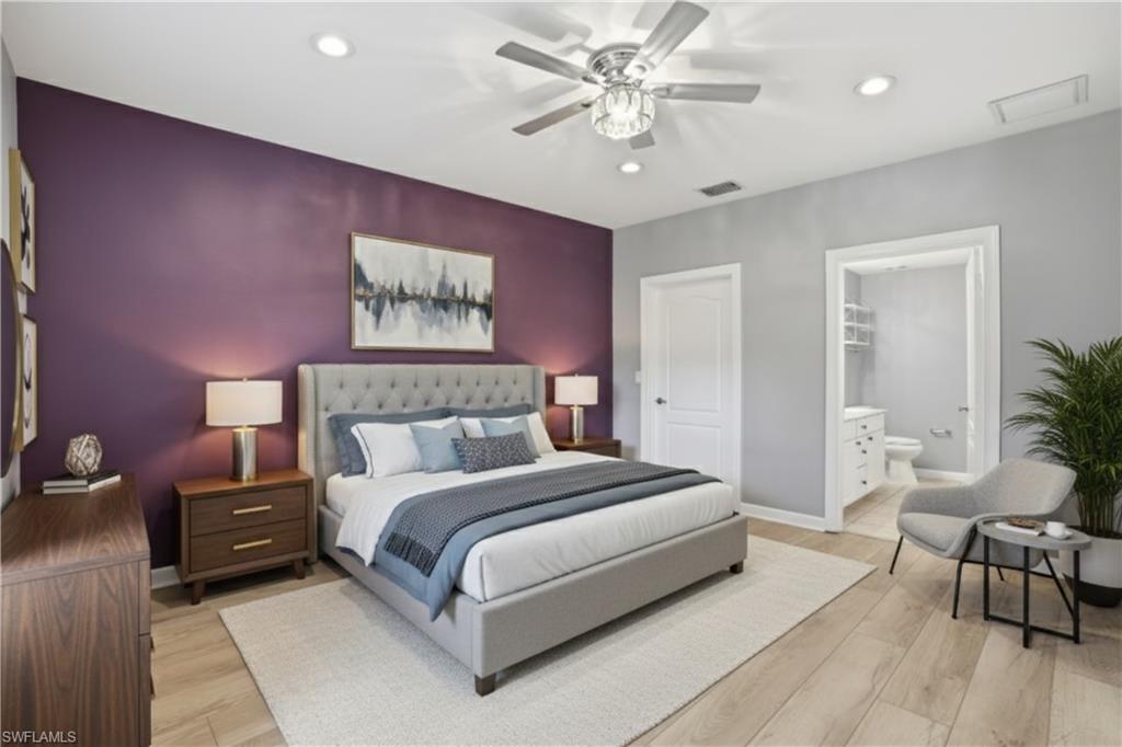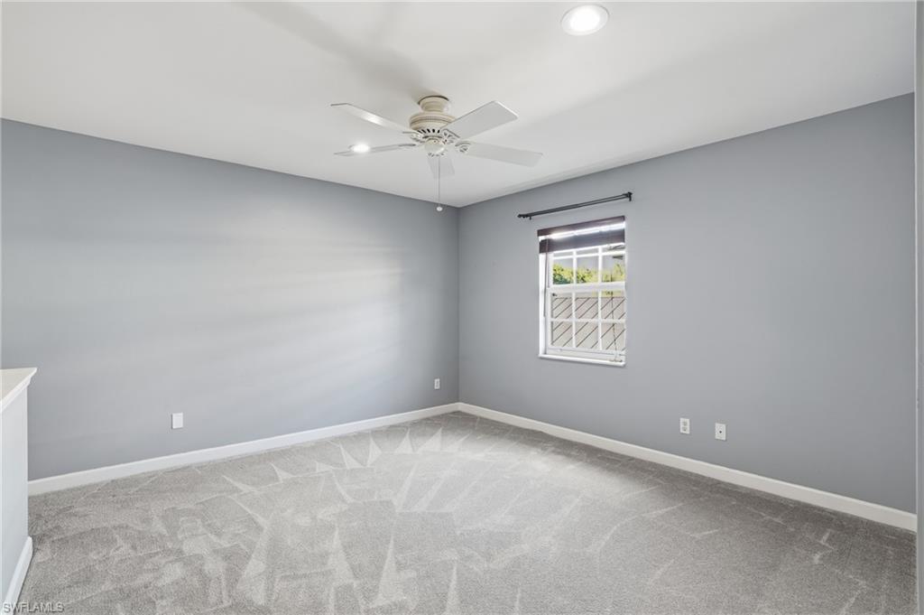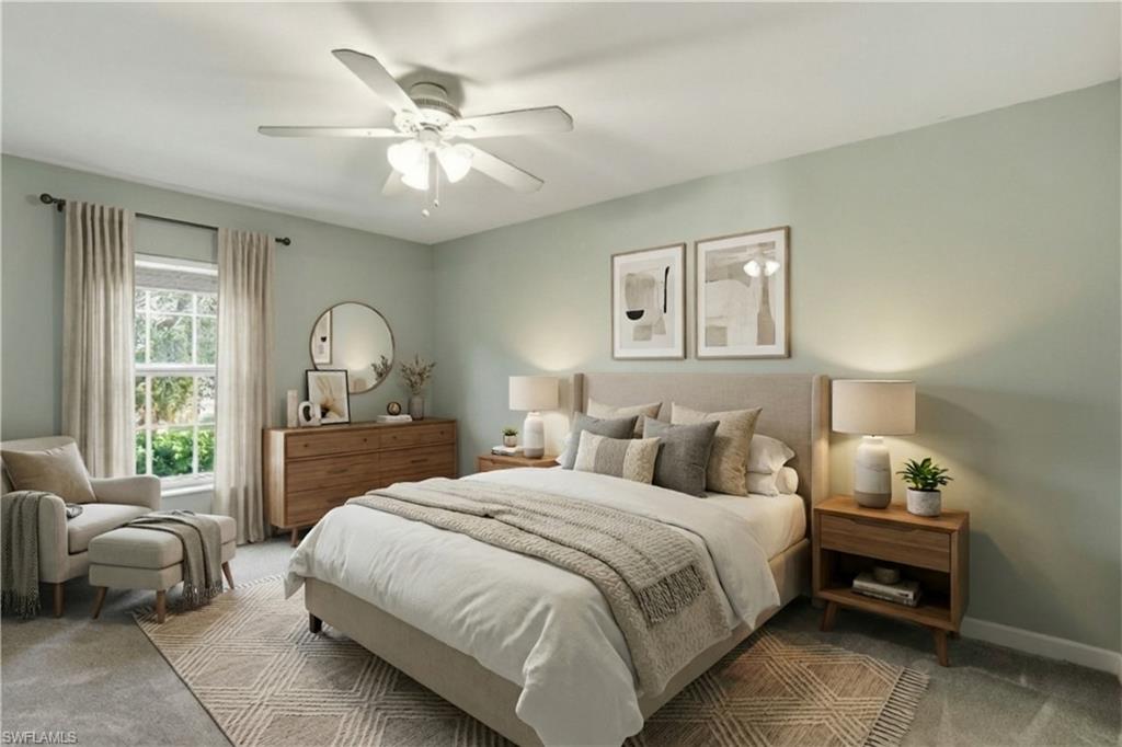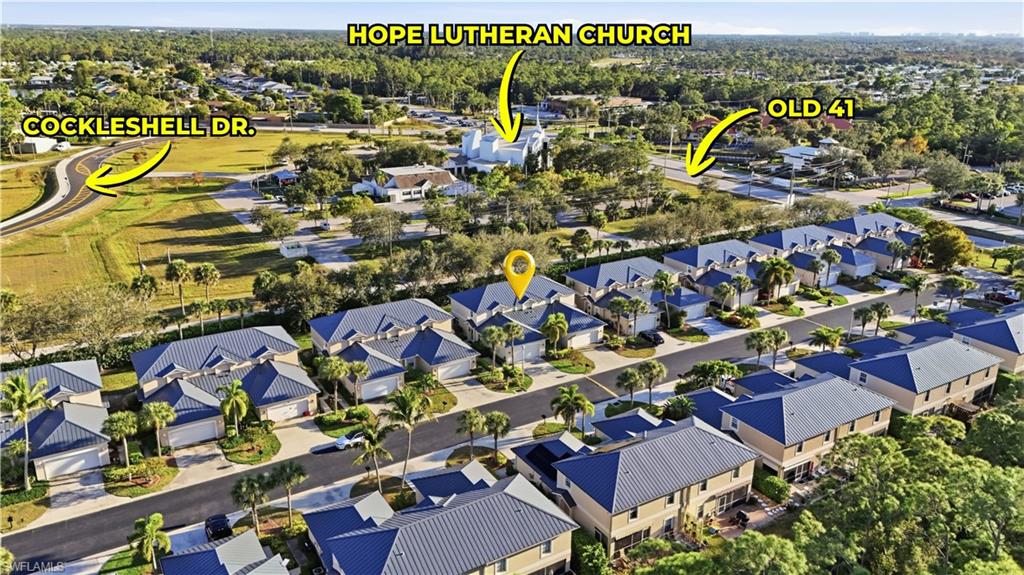 Discover 9763 Glen Heron Drive, a stunning home situated in the sought-after community of Cockleshell Village, with only 44 Single Family Homes and very low HOA's. This meticulously cared-for two-story residence boasts three bedrooms, with the Master on the first floor. Two and a half baths, and nearly 1,800 square feet of elegant living space. After three recent hurricanes this home has no history of storm damage or flooding. Step inside to find a sophisticated yet welcoming interior, where open living and dining areas are illuminated by abundant natural light and adorned with classic finishes. The main level showcases neutral tile flooring that flows seamlessly throughout, complemented by designer lighting fixtures and stylish accents to create a refined atmosphere. The chef-inspired kitchen features sleek white cabinetry, elegant granite-style countertops, stainless steel appliances, and a chic modern backsplash that marries style with practicality. The first-floor primary suite serves as a serene retreat, featuring hardwood flooring, a spacious walk-in closet, and a beautifully designed en-suite bath. On the upper level, you'll find two additional bedrooms and a versatile loft space perfect for guests or as a media room or home office. Fresh flooring has just been installed in the master bedroom and closet! Outdoor living is just as impressive, featuring a screened lanai and an extended patio that overlooks lush landscaping—an ideal spot for al fresco dining, entertaining, or peaceful relaxation. An attached two-car garage adds convenience to this thoughtfully designed home. Located just off of Business 41 on a private road with low HOA fees, this property combines exclusivity with incredible value. Enjoy a central location just minutes from Bonita’s beautiful Gulf beaches, Hertz Arena, and the new local high school offering accredited college-credit programs. Upscale dining, shopping, and major thoroughfares are also within easy reach.