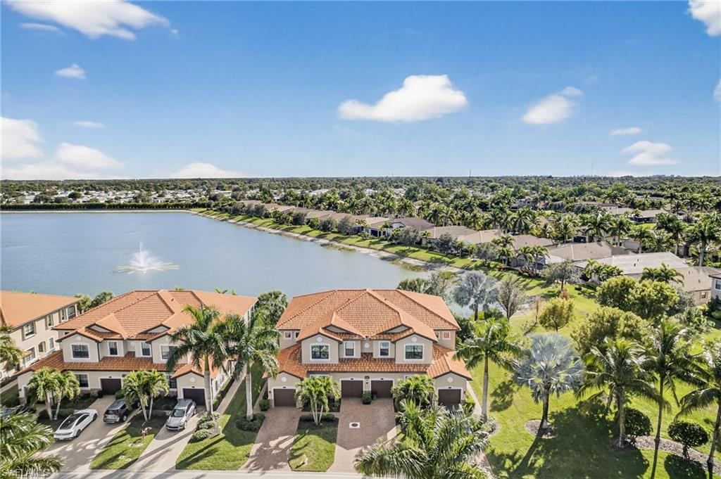 PERFECTLY PLACED AT PALOMA!! Location, location, location! This carriage home is not only spacious, pristine and beautiful but it is located in the best positioned building in the community offering a huge lake view, light and bright southern exposure and a quiet location furthest away from any road noise!! This carriage home is an all-around WIN!! With a feel of being new, features include fresh neutral paint, white modern kitchen with stainless steel appliances (DISHWASHER 2024) and cool grey subway tile backsplash, tile throughout with BRAND NEW cozy carpets in the bedrooms, recessed lighting, tons of windows and glass sliding doors for natural light, ELECTRIC HURRICANE SCREEN STYLE SHUTTERS ON LANAI FOR ADDED PEACE OF MIND, window treatments on every window, large master suite with lake views, en-suite private bath and HUGE WALK-IN CLOSET, 2 SPACIOUS GUEST BEDROOMS PLUS A DEN/OFFICE, Large guest bathroom, laundry closet with new washer (2024) and so much more!! For the outside enjoy a private covered and screened lanai overlooking the lake and fountain, 1 Car Garage, freshly painted exterior, brick paver driveway, tile roofs and just a short walk to the Community Amenities!! Amenities include large resort style pool, newly renovated clubhouse, fitness center, tennis/pickleball and bocce courts. Plus, no CDD fees! Call for your private showing today!!!