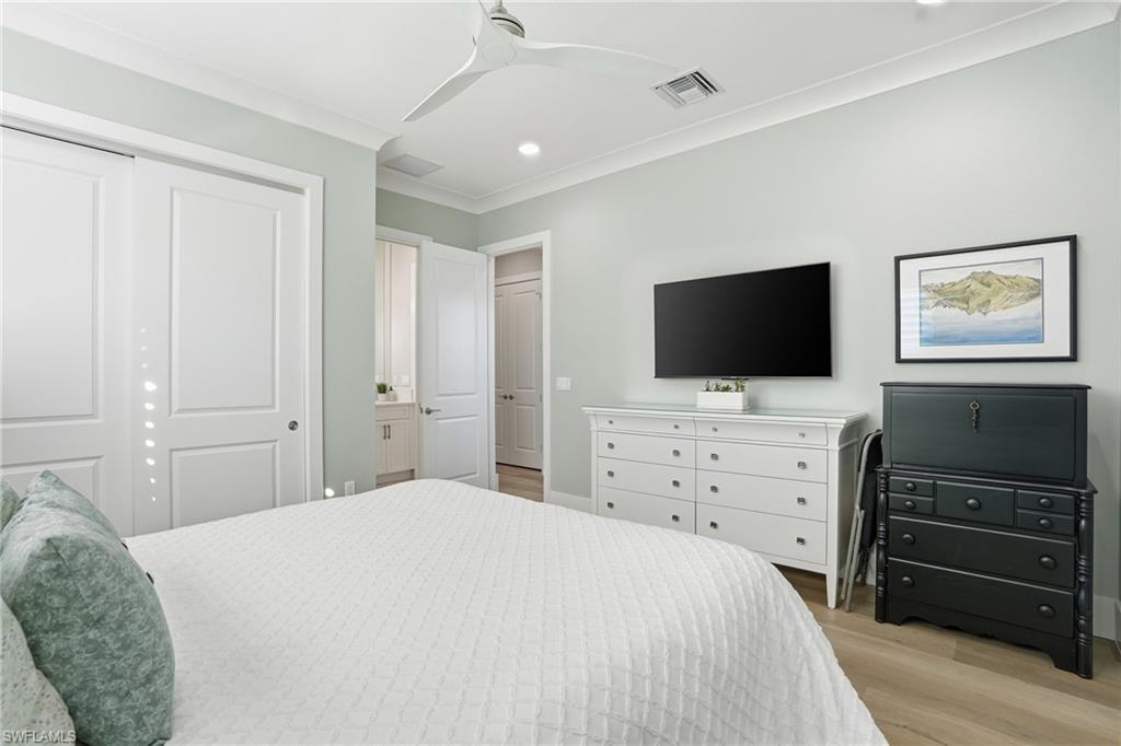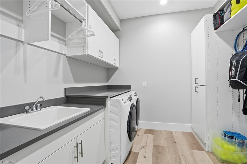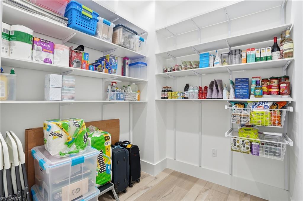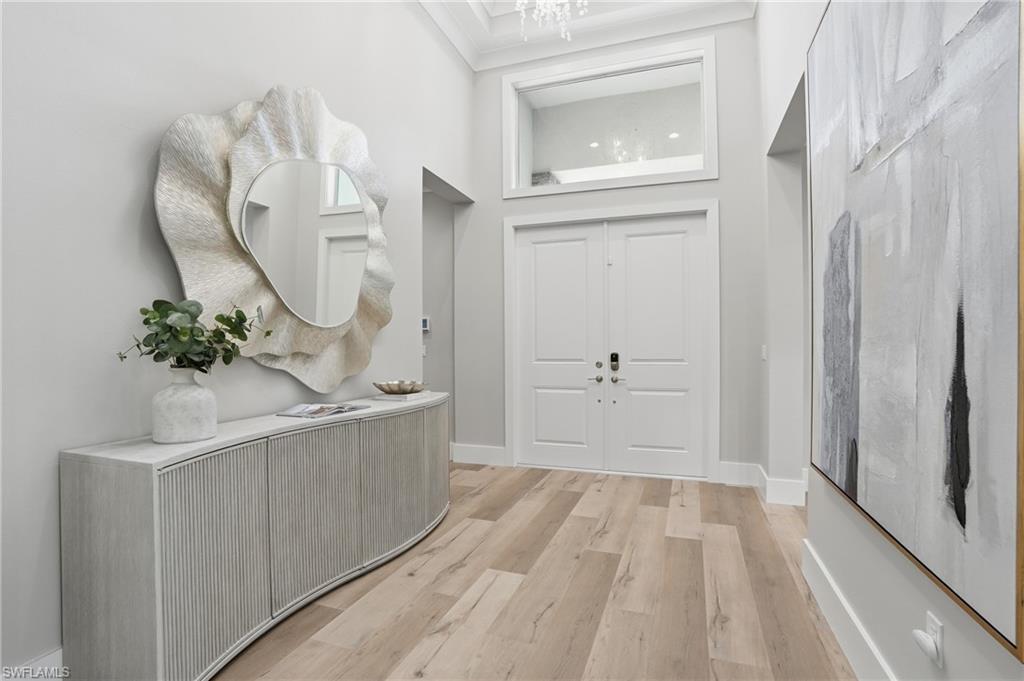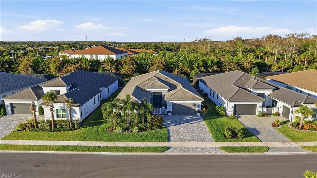 Welcome to the "Butterfly House" at 12021 Azalea Way in the prestigious Valencia Trails 55+ gated community in Naples. You'll be immediately impressed by the handsome front entrance that sets an upscale tone, this thoughtfully designed Estero model floorplan offers spacious, open living with 4 bedrooms, 3 full baths plus a powder room, and abundant natural light throughout. Step inside to discover gorgeous wide-plank hardwood floors flowing seamlessly through the home, paired with upscale finishes, upgraded cabinets to the ceilings, solid core doors throughout, high-end ceiling fans in every room (including the lanai), and plantation shutters on most windows for a sophisticated, designer-decor feel. The kitchen is a chef's delight with natural gas cooktop, GE Profile upgraded appliances (including 3 convection ovens and microwave), Insta-Hot at the sink, a custom large walk-in tall pantry with custom shelving, and thoughtful storage solutions everywhere—from an expansive double-wide hall closet with custom shelving to upgraded custom closet systems in all bedrooms. Smart technology and premium upgrades abound: *High-speed Ethernet cabling throughout to a central hub *Lutron automated, app-based lighting system with upgraded LED fixtures *Carrier Infinity Series HVAC with MERV 15 air purifier and APCO-X line cleaning *Whole-house Generac generator *HALO H2O whole-house water filtration (10-year warranty) plus under-sink reverse osmosis *Yale automated keypad locks (programmable for guests/vendors) *Electric vehicle chargers in the garage *Upgraded electrical panel and allowance *Automated retractable storage units in the large garage Peace of mind and luxury features include impact glass windows and doors, Spectre hurricane screen shutters on the lanai (plumbed for water and gas—ready for your custom outdoor kitchen), two garage AC units, and a luxurious whirlpool tub in the primary bathroom. The backyard's serene, private butterfly garden creates a tranquil oasis, perfect for relaxation and enjoying Florida's wildlife—earning this home its charming "Butterfly House" nickname. Residents enjoy an unparalleled resort-style lifestyle in Valencia Trails, with a magnificent 43,000 sq ft clubhouse featuring a full restaurant, bar, theater, fitness center, multiple pools (including lap and resistance), pickleball, tennis, bocce, walking trails, dog parks, social events, and more—all just around the corner from this prime location. This move-in-ready gem blends thoughtful design, luxury finishes, smart tech, and peaceful surroundings—don't miss your opportunity to own this special home in Valencia Trails!
