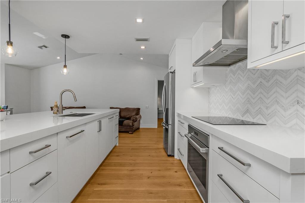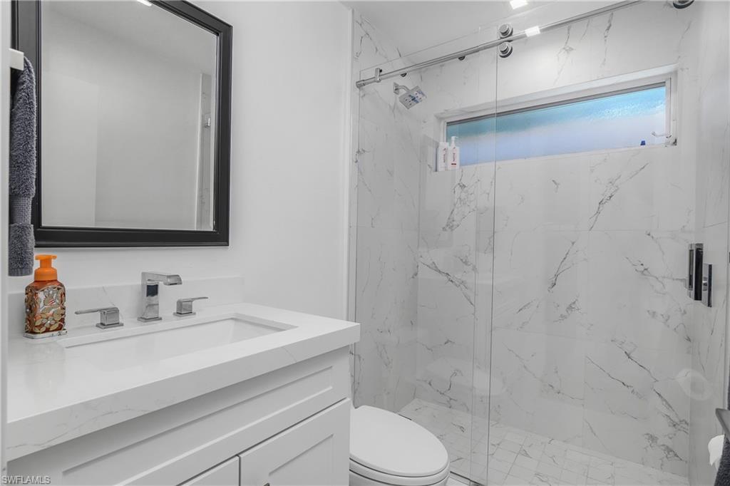 Welcome to 3660 Cartwright Ct—an exceptional opportunity to own a move-in-ready home tucked away on a quiet cul-de-sac in one of Bonita Springs’ most sought-after locations. Ideally situated west of US-41 and just three miles from the white sands of Barefoot Beach and Bonita Beach, this beautifully remodeled residence offers both lifestyle and investment appeal. The home features stunning Legno Bastone 8½” wide-plank wood flooring throughout, an open-concept kitchen with an oversized island, Pompeii Quartz countertops, and premium Bosch and Wolf appliances. LED lighting enhances the modern design, while the primary suite impresses with custom built-ins and a custom closet. The fully remodeled primary bathroom includes a double vanity and a spacious walk-in shower. Designed for entertaining, the home offers a separate custom bar area with open shelving and an under-counter beverage refrigerator. The expansive lanai overlooks a private, landscaped backyard with ample room to add a pool. Additional highlights include a two-car garage with epoxy flooring, newer exterior lighting and landscaping, hurricane shutters, and a whole-house Generac generator for peace of mind. Located in the Cartwright subdivision, this property has no HOA fees, no deed restrictions, and no rental restrictions, making it especially attractive to investors. With close proximity to world-class beaches, shopping, dining, and entertainment, this home offers strong income potential and an exceptional Florida lifestyle.