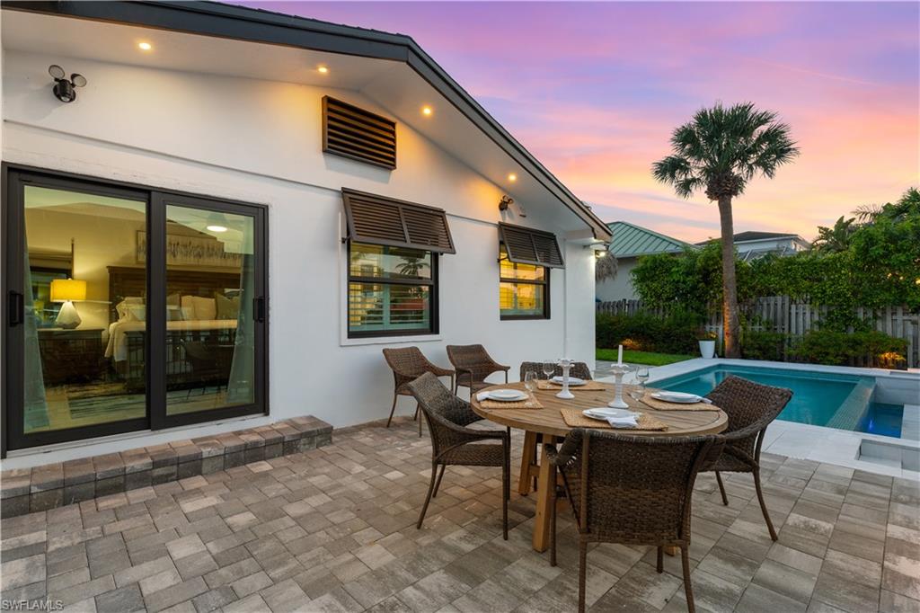 A rare investment opportunity and the only multifamily-style residence currently available in the entire Connors area of Vanderbilt Beach. This exceptional Gulf-access waterfront property offers versatility, usability, and long-term value, set on an oversized corner lot with approximately 105 feet of canal frontage. Constructed of concrete block and designed as a single-story residence, the property features a primary home plus a separate guest apartment, creating a flexible layout ideal for personal use, income potential, or extended family living. A private dock is already in place and accommodates two boat lifts, including one lift with a boathouse, providing protected and convenient boating access. The wide canal offers open water views, excellent maneuverability, and a desirable setting within one of Naples’ most established boating communities. Outdoor living is a standout feature of the property, thoughtfully designed for both entertaining and relaxation. Enjoy the beautiful infinity-edge pool surrounded by an expansive paver deck, along with a canal-front tiki hut featuring a full bar, Bluetooth speaker system, and scenic water views—perfect for sunset gatherings. A pergola with integrated lighting creates an inviting space for evening dining or lounging, while a private 7-hole mini-golf course adds a distinctive and rarely found amenity that enhances both lifestyle enjoyment and guest appeal. Interior spaces are comfortable, stylish, and fully updated, featuring a split-bedroom floor plan, abundant natural light, and seamless indoor-outdoor connectivity. The entire interior has been completely renovated with modern finishes and improved functionality throughout. The single-level design enhances accessibility and everyday livability. The main residence includes three bedrooms plus a den and two full baths. A separately metered guest apartment with private entrance and dedicated parking offers one bedroom, one bath, kitchen, living area, laundry, and screened porch—allowing for independent use or rental flexibility. Recent improvements include a new roof, impact-resistant windows and sliders throughout, and storm surge protection, providing added peace of mind and long-term durability. With multiple living spaces, two boat lifts, and direct Gulf access, this canal-front property offers a level of flexibility rarely found in the Connors area and supports a wide range of ownership strategies. Ideally located near Vanderbilt Beach, the Ritz-Carlton, and Mercato, with convenient access to premier dining, shopping, and coastal amenities, this property presents a compelling opportunity in one of Naples’ most desirable waterfront neighborhoods.