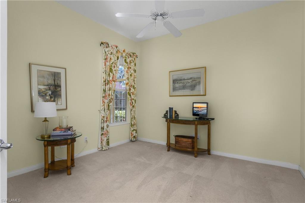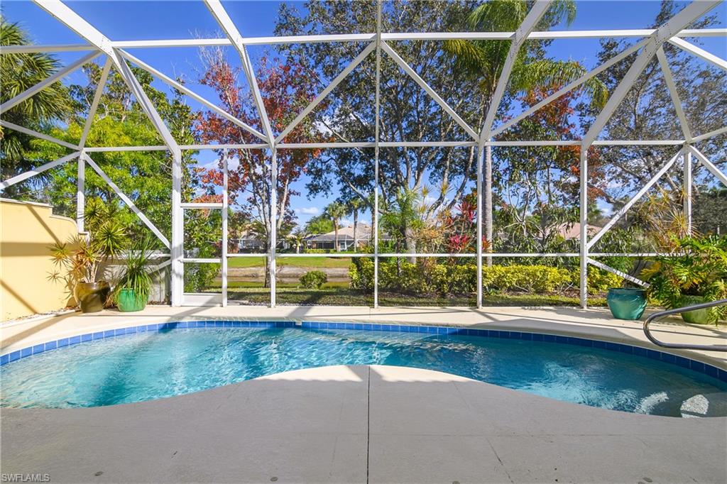 Welcome to this beautifully maintained single-family Solar heated POOL home in Village Walk of Bonita Springs, where Florida living meets everyday comfort. Relax on your private lanai overlooking a scenic canal view. Outdoor living at its finest. This 3-bedroom, 2-bath plus den/office OAKMONT Model offers 2,011 sq ft of thoughtfully designed living space, perfect for full-time residents or seasonal enjoyment. Set within this welcoming community close to MIDTOWN BONITA complex (coming soon), Gulf beaches, shopping, dining, golf, and outdoor recreation, this home delivers the lifestyle Bonita Springs is known for. Enjoy peace of mind with a replaced roof, freshly painted exterior ( Neutral Ground- no longer yellow), with storm protection throughout. Inside, the warm and inviting interior features Quartz Kitchen Countertops, updated white appliances, subway tile backsplash, Stainless Steel Farmers sink and elegant crown molding throughout the main living areas. The den/office boasts custom bookshelves and can be closed from the rest of rooms for the privacy of those working remotely. The Great Room has custom cabinetry complimenting the Divosta wall unit, and is a gathering spot for watching your favorite sports and other television highlights. Two guest bedrooms and a shared bath are conveniently separated down a hallway from the Great Room offering privacy. The Primary Suite with two separate areas is located at the back of the home, with closet space galore. The spacious layout opens to a kidney shaped private pool—ideal for enjoying Florida’s year-round sunshine. A separate laundry room adds practicality to this well-appointed home. A perfect blend of comfort, custom upgrades, and location—this home is truly move-in ready to enjoy the Southwest Florida lifestyle.