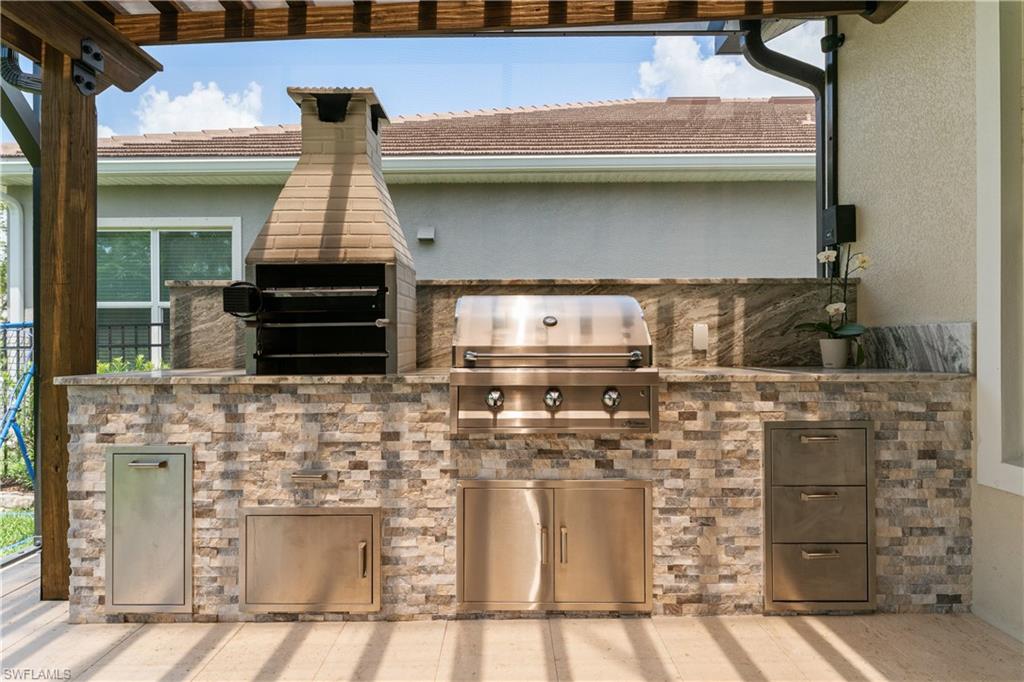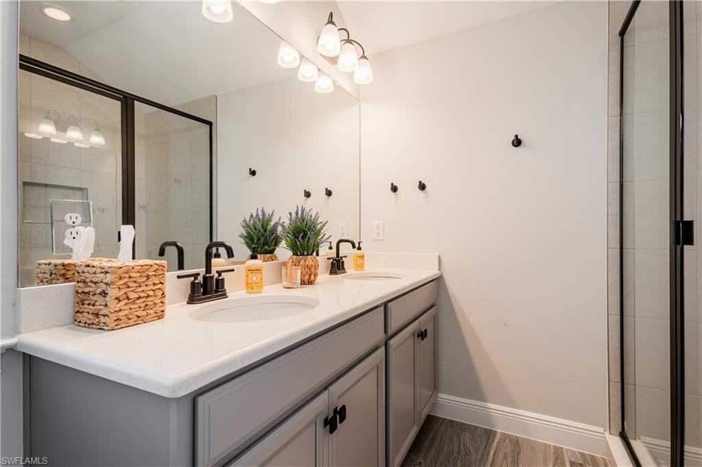 Rare Opportunity! Final Home in Naples Community Built in 2023! This stunning and spacious 4,651 sq. ft. residence is the LAST home constructed after neighborhood completion in this sought-after Naples community. 5 BED + Den 4 FULL Baths and 2 Half Baths. Home boasts over $350,000 in PREMIUM UPGRADES throughout. Designed with LEVEL 5 TOP-GRADE FINISHES including wide plank tile flooring throughout and elegant 3" QUARTZ countertops in kitchen and bathrooms. Large walk-in closets with CUSTOM SHELVING SYSTEMS in all bedrooms. All high-end modern sophistication hardware and plumbing fixtures throughout. MASSIVE 3,456 sq. ft. of living area is located on the first floor alone, featuring wide open living spaces and a luxurious first-floor primary suite and a total of 4 bedrooms on main floor—a highly desirable layout including a GAME ROOM and PRIVATE ADDITIONAL ENSUITE upstairs. 3 total ensuite bedrooms, 2 jack and jill, and a visitor ½ bath on each floor. Additional den has been completely opened up for use as a spacious FORMAL LIVING ROOM. Set on a UNIQUE DOUBLE LOT backing up to a serene wooded preserve, this home offers both PRIVACY and SPACE. Upgraded EXTENDED LANAI with coral stone pavers inside FULLY FENCED YARD. Additional highlights: High impact, 3-panel sliding doors that bring the outdoors in. EXTRA-LARGE LOT, perfect for a future pool while still maintaining a generous yard. Extended long and wide driveway, ideal for guest parking. NO FLOOD ZONE! No flood insurance required. Don’t miss this rare opportunity to own the final newer construction home in this beautiful community!