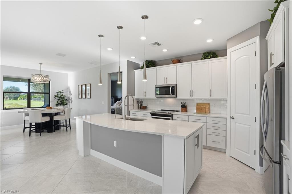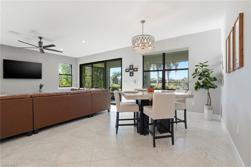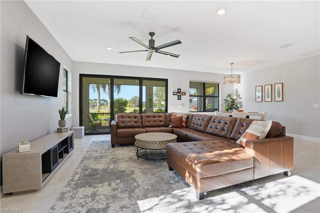 Welcome to this bright and spacious 2 Bedroom plus Den Pulte Summerwood floor plan, that is being sold TURNKEY! Perfectly positioned on a premium lakefront homesite with sought-after southern exposure and room to add a pool. Built in 2018 and impeccably maintained, this home offers the feel of a luxury estate with a private driveway and an oversized attached 2-car garage with additional space for storage or a golf cart. This home is being sold for a truly move-in-ready experience. Over $100,000 in builder-selected upgrades were added during construction to enhance both style and function, including impact glass, tile flooring throughout, quartz countertops, and upgraded white cabinetry with pull-outs. The kitchen features under-cabinet lighting, tile backsplash, reverse osmosis water system (plumbing ready for whole-home), and stainless steel appliances, all open to an extended great room and a covered lanai with beautiful lake views—ideal for relaxing or entertaining. Enjoy the resort lifestyle at The Ranch at Orange Blossom, featuring two pools, a clubhouse, fitness center, tennis, sand volleyball, playground, and basketball courts, with neighborhood conveniences that everyone will appreciate.