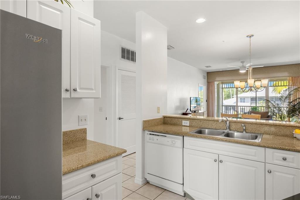 GREAT INVESTMENT OPPORTUNITY. Welcome to your dream lake view condo in the highly desired Greenlinks at Lely Resort! This rare 2-bedroom, 2-bath property features 2 master suites, offering a perfect blend of luxury and comfort. The stunning lake view, complete with a tranquil waterfall, can be enjoyed from one of the master bedrooms, making this condo an irresistible retreat. Prime location is truly unparalleled, with downtown Naples and Marco Island beaches just a short drive away. Plus, it’s only a one-minute stroll to the community pool! The kitchen is a chef's delight, featuring granite countertops, a well-organized pantry, and a newer stacked washer/dryer. The condo offers ample storage with two large walk-in closets. The master bath is designed for relaxation, featuring a large walk-in tile shower, dual vanities, and a garden tub. The guest bedroom conveniently connects to the guest bath, allowing for a private second master suite experience. Greenlinks community is packed with amenities, including 2 tennis courts, a pickleball court, shuffleboard, bocce ball, a resort-style pool and spa, and a pool clubhouse equipped with both fitness and business centers. Golf enthusiasts will revel in membership benefits, including access to two 18-hole courses, 42 rounds of golf, a driving range, and a 20% golf shop discount. Additionally, become a member of the exclusive Player’s Club and Spa to enjoy world-class amenities. With access to three resort-style pools, a full-service spa, state-of-the-art fitness center, top-tier tennis and pickleball courts, casual and fine dining options, and weekly member events, there are endless opportunities for recreation and relaxation. Additional offerings include bocce courts, a billiards room, a theater, members-only office facilities, and a dog play park. This property is the epitome of luxury living and an ideal getaway, whether you choose to make it your year-round residence or a vacation escape! Don’t miss out on this exceptional opportunity!