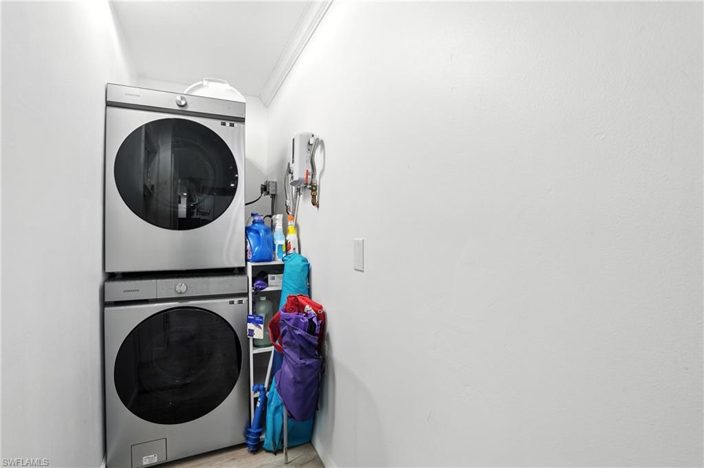 Single family residence located in the convenient Poinciana Village neighborhood of Naples. Offering 1,789 square feet of thoughtfully designed living space on a 7,400+ square-foot lot, this three-bedroom, two-bath home delivers both functionality and style in a prime central location. Inside, a light-filled interior is enhanced by crown molding throughout the main living areas and wood-look luxury vinyl flooring that adds warmth and durability. The split-bedroom floor plan provides ideal privacy, while the home’s formal dining room and eat-in kitchen create flexible spaces for everyday living and entertaining. Significant updates provide peace of mind, including impact-resistant windows, a 2018 roof, and a 2022 air conditioning system. A one-car garage, dedicated laundry area, and ample driveway parking further enhance everyday convenience. Step outside to a private backyard retreat featuring lush landscaping, a brick-paver patio, and a screened lanai—perfect for hosting gatherings, grilling, or enjoying quiet moments outdoors. The yard is fully fenced, making it ideal for pets or play. With no HOA fees and no rental restrictions, this property offers exceptional versatility for homeowners and investors alike. Located less than six miles from downtown Naples and approximately five miles from the area’s pristine beaches, residents also enjoy nearby community amenities including playgrounds, tennis courts, and basketball courts. Zoned for top-rated schools—Poinciana Elementary, Gulfview Middle, and Naples High School—and just minutes from Coastland Center Mall and the renowned dining and shopping of 5th Avenue South, this centrally located home delivers the Naples lifestyle without community restrictions.