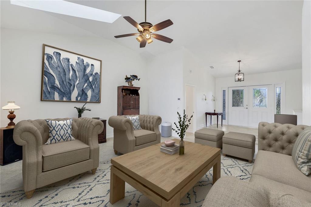 Situated on more than half an acre in the Imperial Golf Estates neighborhood in North Naples, this beautifully maintained one-story residence offers nearly 2,800 square feet of thoughtfully designed living space. Solid construction and major updates provide peace of mind, including a 2018 roof with gutter guards, 2022 HVAC system, hurricane-rated windows and slider, hurricane-rated front door, and a 2025 hurricane-rated garage door. Truly move-in ready. The expansive open floor plan features tile throughout and seamless flow from the kitchen into the spacious living areas. The kitchen is designed for both function and entertaining, complete with granite countertops, stainless-steel appliances, and generous workspace. The owner’s suite is privately positioned and offers dual vanities, a large walk-in shower, and two walk-in closets. Two additional bedrooms are located on the opposite side of the home, creating an ideal split-bedroom layout. Step outside to your private retreat. The oversized lanai showcases a large swimming pool with fountain, a well-maintained screened cage, covered seating area, and a convenient pool half bath. Walls of glass from two separate living areas frame the outdoor space beautifully, blending indoor and outdoor living effortlessly. The immaculate two-car garage features additional storage cabinetry. The oversized lot is located in a quiet section of the community and includes a fenced rear area perfect for pets. All of this just minutes from shopping, dining, parks, Naples’ white sandy beaches, and located within an A-rated school district.