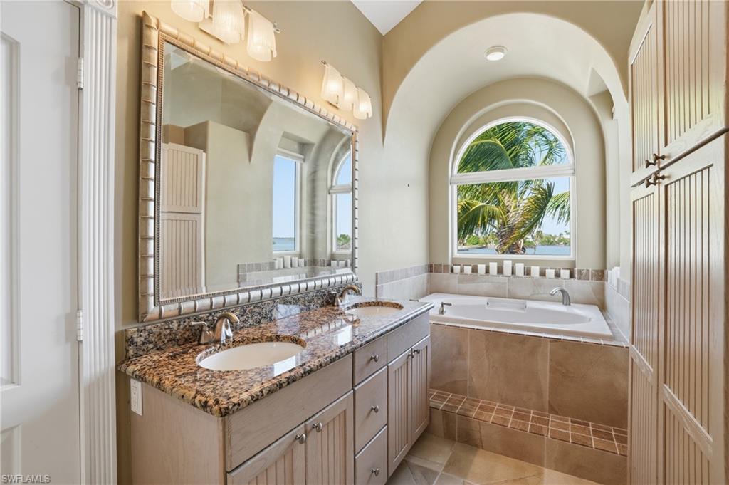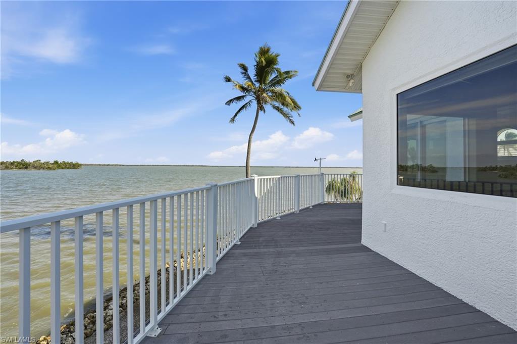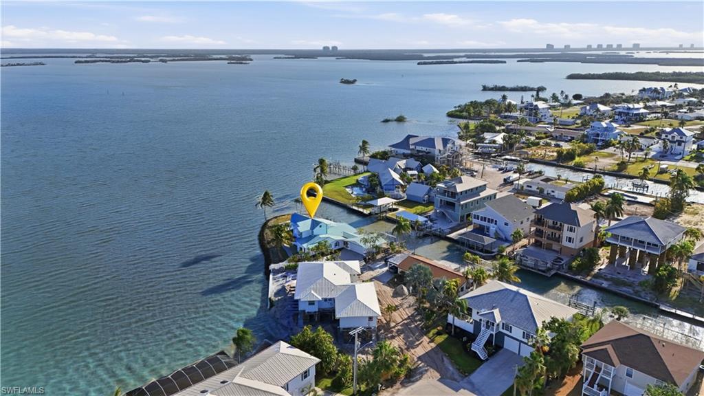 Exceptional Estero Bayfront residence offering rare peninsula living and breathtaking panoramic water views. Situated on an oversized 0.34-acre (14,636 sq. ft.) bayfront lot, this truly one-of-a-kind home delivers approximately 280-degree views of Estero Bay, providing remarkable privacy and a serene coastal setting rarely found on Fort Myers Beach. Spanning over 3,000 square feet, this thoughtfully designed four-bedroom, three-and-a-half-bath home features an open-concept layout with porcelain tile flooring, recessed lighting, and modern zebra window shades throughout. Walls of impact-resistant glass—including a four-panel stacking slider and additional sliding doors—frame the expansive bay views while seamlessly connecting the interior living space to a screened lanai with picture-window screens. Outdoor living is enhanced by a waterfront pool and spill-over spa, positioned at the bay’s edge and surrounded by a travertine-tiled deck ideal for entertaining and relaxed coastal living. The southern canal side of the property is well-suited for boating, offering a private dock with lift, plus an extended dock accommodating visiting boats or personal watercraft. The flexible floor plan provides multiple primary suite options, allowing owners to tailor the home to their lifestyle. The main-level suite features a spacious bath, walk-in closet, and private den that may easily convert to a fourth bedroom with Jack-and-Jill bath access. The upstairs primary retreat offers exceptional natural light, arched windows, a lighted tray ceiling, and an extended private balcony—ideal for enjoying sunrise views. This suite is completed by a large walk-in closet and an en-suite bath with dual-sink vanity, platform-raised soaking tub, and beautifully tiled walk-in shower. The updated kitchen serves as the heart of the home, featuring quartz countertops, a full-height tiled backsplash, a wall of cabinetry, and an under-mount stainless steel sink—blending modern design with everyday functionality. A welcoming foyer provides space for a sitting area, while southern and eastern exposures fill the main living spaces with natural light. A breezeway connects the home to a two-car garage with additional storage or workshop space. Additional improvements include impact-resistant windows and doors throughout, a new A/C condenser and first-floor ductwork, 4-foot cement board walls on the lower level, and first-floor laundry. Very few properties on Fort Myers Beach offer this level of privacy, water frontage, boating access, and panoramic bay views. An extraordinary opportunity to own a distinctive Estero Bayfront home in a premier island setting.