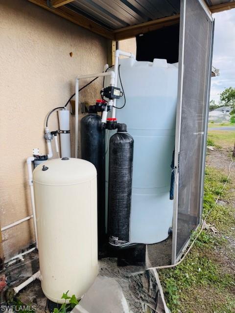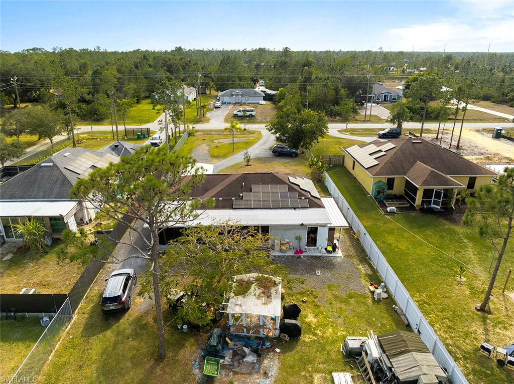 Cozy and well maintained 3-bedroom 2 bath home located in desirable Golden Gate Estates situated on mostly cleared 1.14 acres with no HOA. Features include a One car Garage with attached carport and a huge partially screened lanai complete with an outdoor kitchen perfect for entertaining. Recent upgrades include a new roof (2019) whole home Reverse Osmosis system, Door to the Lanai and Lanai (2023), and brand-new stainless-steel refrigerator and microwave (2024). The kitchen offers wood cabinetry and Corian countertops. Tile throughout the home. energy efficient solar panels provide added savings. Home is equipped with an alarm system and front and rear security cameras. Additional storage includes an outdoor shed and storage closet. Income Potential: the primary bedroom, walk-in closet, updated bathroom with modern shower and a portion of the lanai have been converted into an efficiency with a separate entrance. Plenty of space for a pool. Has side access with a vehicle from one side of the home. Whether you are looking for a great investment or a home for your family this home has it all. Plenty of space, privacy and versatility this property is a must-see.