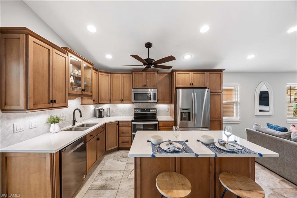 Welcome to your charming and cozy beach and pool retreat, an exceptional value that truly checks every box. Just one mile from white sand beaches, this spotless home currently functions as a successful vacation rental and is offered turnkey furnished. Simply bring your toothbrush and start enjoying the Florida lifestyle from day one. Designed for casual living, the open floor plan of this 3 bedroom, 2 bath home flows effortlessly and is enhanced by beautiful custom trim work throughout, including crown molding, built in shelves, and custom cabinetry that add warmth and character. Every detail has been lovingly maintained, making this home feel fresh, welcoming, and impeccably cared for. How about a twilight swim? The generous sized master bedroom enjoys easy access to the heated saltwater pool and spa. Unwind regardless of rain or shine under your covered lanai. Enjoy your morning coffee or cool beverage to the soothing sounds of the spa water feature. Or relax in the den while watching the flat screen TV. Peace of mind comes standard with this insurance friendly property. Located in an X flood zone so no flood insurance is required, the home also boasts impact resistant doors and windows along with the durability and safety of a metal roof. This combination offers comfort, peace of mind, and long term savings. Whether you are looking for a personal getaway, full time residence, or a high performing investment, this home delivers. Investors will appreciate the proven income history with recent annual revenues of $112,000. Checkout the property and it's stellar 5 Star Guest Reviews from their vacation rental website (ask your agent for the URL). Relax by your private pool, head to the beach in minutes, or explore all that Naples has to offer knowing you made a smart and stylish choice. Agents please read confidential comments.