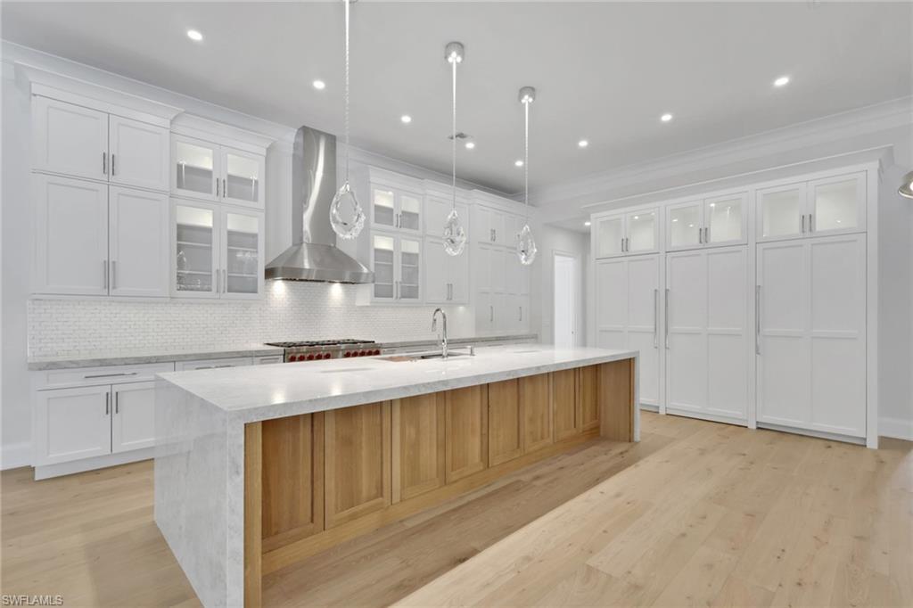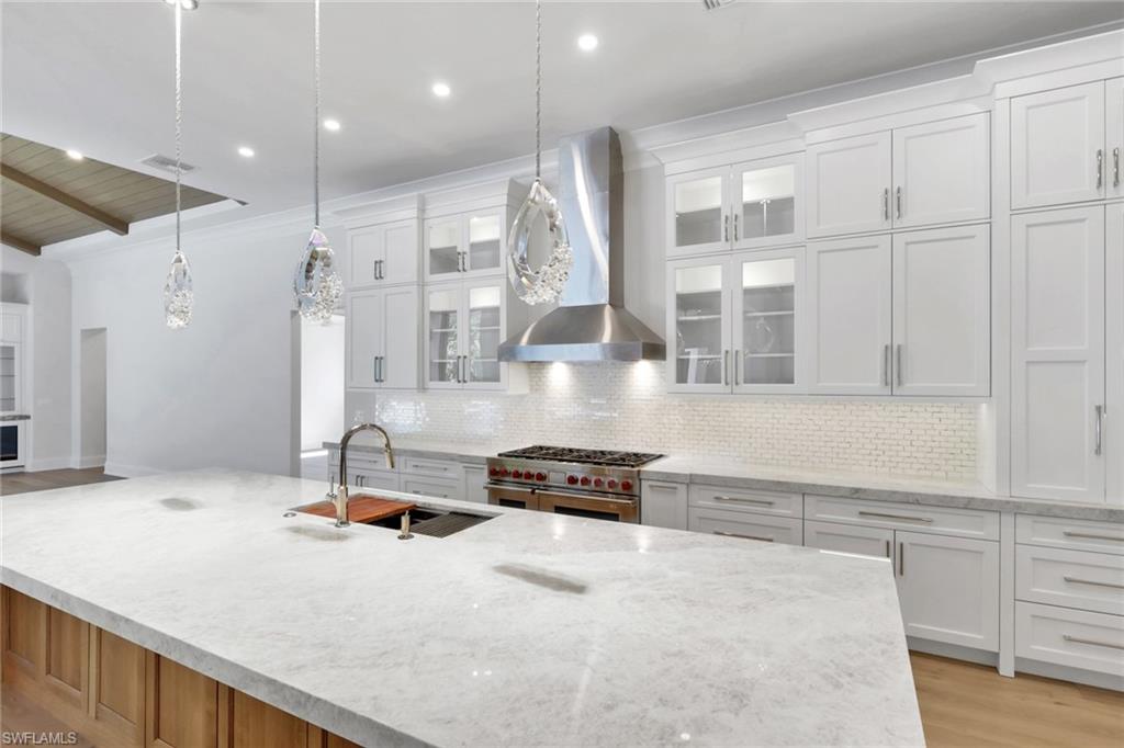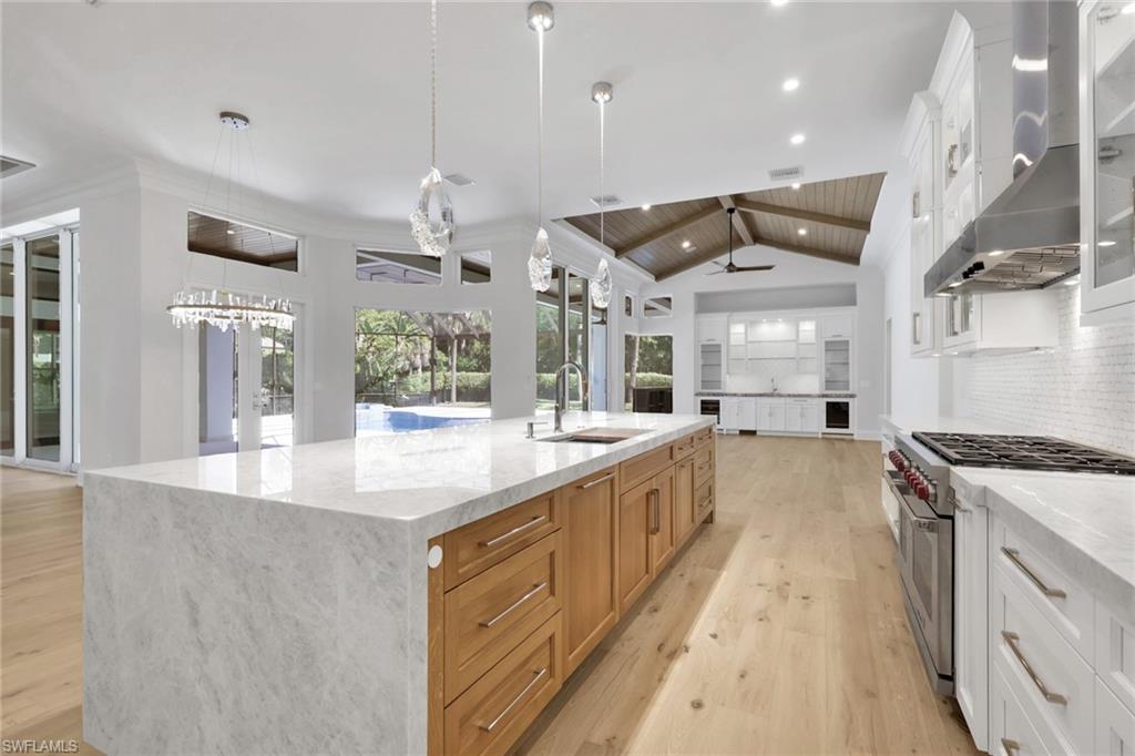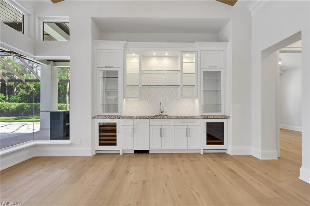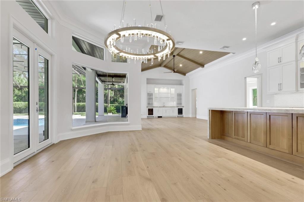 MOVE IN READY! This home has been completely transformed from the inside out!! The builder spared no expense in the redesign and finish of this well built home. Some of the updates include: new engineered hardwood flooring and tile in the bathrooms, complete Kitchen Renovation with new custom cabinetry, double island, Subzero tower fridge, tower freezer and Gas cook top Wolf Appliance package, walk in pantry with extra fridge, and custom lighting. The 14' Ceilings lend to the perfect landscape for beautiful new wood trim ceiling details with beams and nickel gap wood. All rooms completely refreshed with new doors, cove moldings, and base trim. Large Master bath with double shower, large vanities, and automatic toilet. Large Family room with planked ceiling, steam and walk up bar. On the Exterior there is a large circular driveway, squared front columns, new flat tile roof, and beautiful stone on the front porch. Along with additional front shrubs and landscaping at the front and back by the pool area. The pool and patio are completely redone wtih full glass bottom pool, with a full outdoor kitchen and bar area. Stop in so we can show you what the finishes entail that make this home live like brand new construction in the beautiful community of Pelican Marsh.