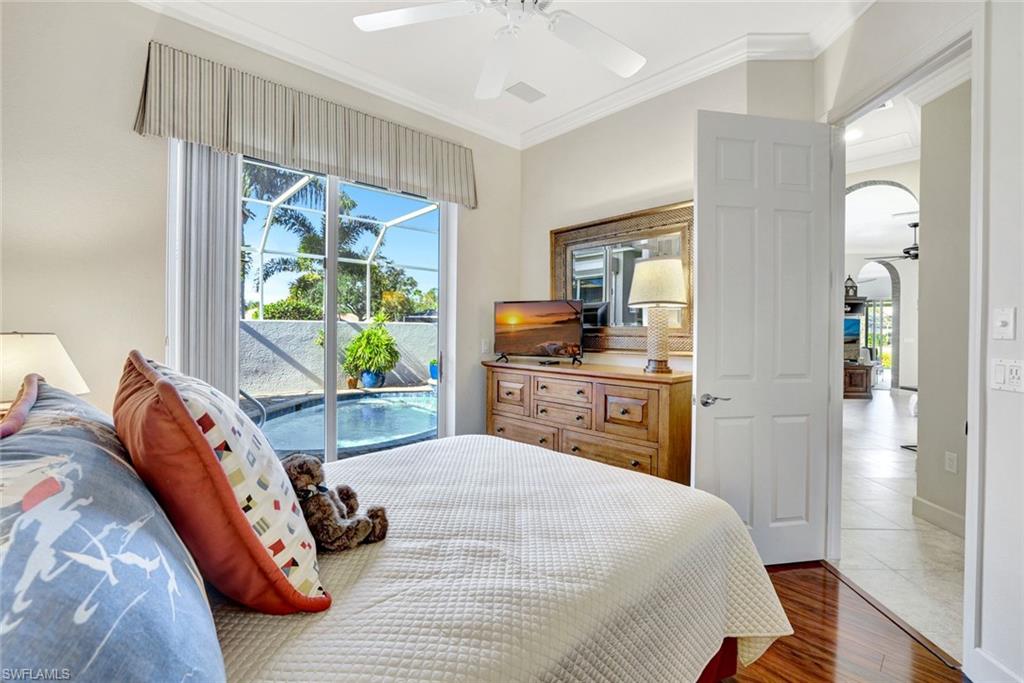 Welcome to your new home in the highly sought after gated community of Carlton Lakes. Move in ready! Fabulously updated and meticulously maintained 3 bedrooms + Den/3BA courtyard pool home, House is located on a private lot with sunset views and 180-degree lake and fountain water views. Relax in your private saltwater pool and spa. The floor plan is ideal for comfortable living with formal living and dining rooms, family room, two lanais, and unbelievable storage. The numerous sliders allow for open Florida living and wonderful entertaining options. The private cabana is perfect for guests. Great updated kitchen, featuring beautiful cabinetry with pull-outs shelves, Quartz counters, marble backsplash, and enclosed pantry with wine fridge and coffee bar. Bathrooms have been updated. Flooring includes real wood and 24-inch tile on the diagonal. This house has an oversized 2 car garage, flooring in the attic, whole house sound system, crown molding, electric fireplace, and central vacuum There is security with a Generac generator, electric hurricane shutters and no flood zone. This ideal location is on the Livingston Road corridor, with low HOA fees, and is close to great shopping. Come get your key to a slice of Paradise. House Painted 2022 Rear Lanai enclosed Sunroom New HVAC 2020 New Water Heater 2023 Pool and Spa resurfaced 2019 New pool heater 2022 Saltwater pool New Roof 2025 New refrigerator 2023 Whole house generator 2025 Osmosis water system Central vacuum