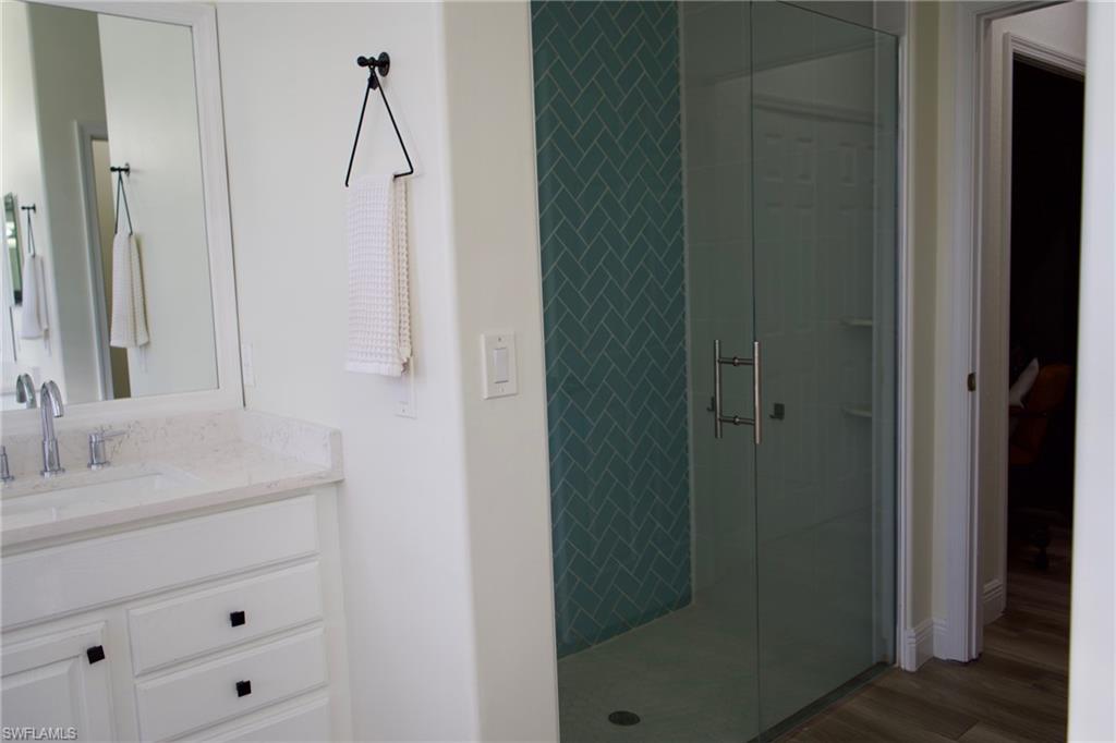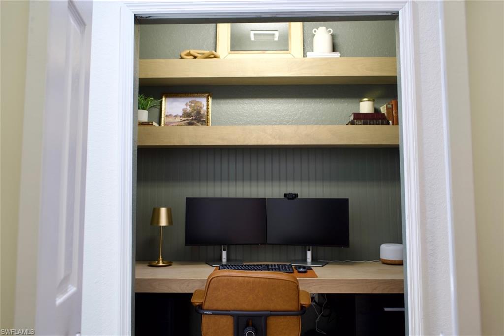 Welcome to this well-maintained 3-bedroom + study, 2-bath home with tranquil lake views in the desirable Forest Park community of Naples, FL. This move-in-ready residence features a functional split floor plan and numerous updates throughout. The spacious primary suite offers a custom walk-in closet and an ensuite bath with double vanities, soaking tub, and custom shower. The additional bathroom also has well-appointed updates including shower, vanities, and fixtures. The bedrooms and dedicated study provide flexibility for guests, home office, or family living. The plantation shutters and motorized blinds provide an upscale feeling inside. Enjoy al fresco dining on the extended lanai or soak in the hot tub on cool winter nights outside. Recent upgrades include new flooring, baseboards, and a renovated primary bathroom (2020); new kitchen cabinetry, countertops, appliances, laundry cabinetry, and exterior paint (2021); and a new whole-house HVAC system (2023). Enjoy the nearby amenities of the community pool, gym, and clubhouse. Golden Gate Community Park is a ten minute walk from the front door with walking trails, playgrounds, and sports facilities, and waterpark. Just 6 miles to Naples’ renowned beaches, upscale shopping, dining, and the vibrant downtown arts and cultural district. Forest Park offers compelling amenities including fiber internet, TV, and landscaping all with a low-HOA and an excellent Naples location. Enjoy all that this home has to offer.