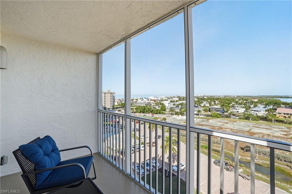 A remarkable value in a truly unmatched setting. Set high above it all on the 9th floor, enjoy the ever-changing colors of sunrise AND sunset right from your balcony. A nature lover’s dream with sweeping views of both Fish Trap Bay and the Gulf—stretching all the way to Sanibel on a clear day. This condo offers a serene private escape with no road noise and uninterrupted panoramic water views. Fully updated and offered turnkey, this well-maintained condo truly shines above the rest. Notable upgrades include impact windows and slider, an updated electric panel, on-demand water heater, and abundant storage throughout. The unit features an in-condo washer and dryer, plus a convenient desk area for those who need to work from home. Thoughtfully separated living and sleeping areas maximize comfort and functionality. The condo complex has been busy restoring the grounds and buildings since Hurricane Ian with new roofs finishing up now, Rebuilt electrical rooms, generators, elevators, concrete and balcony resotoration, Buildings freshly painted and Pools Open to Enjoy. If you’re looking for an investment property, this community’s lenient rental policy allows for short-term rentals, making it an excellent opportunity for strong returns year after year.