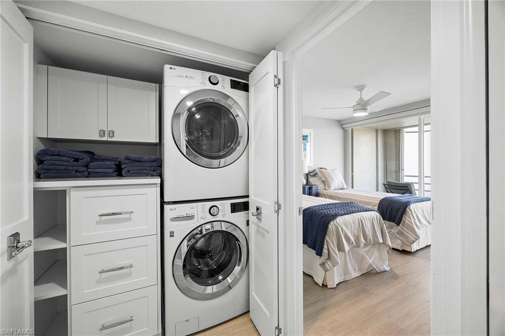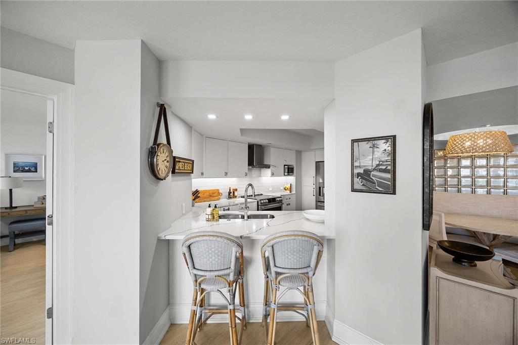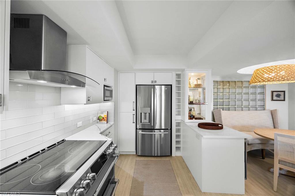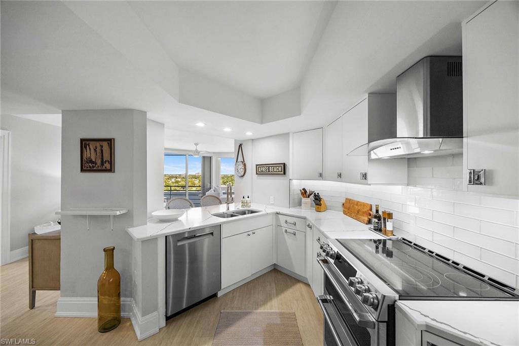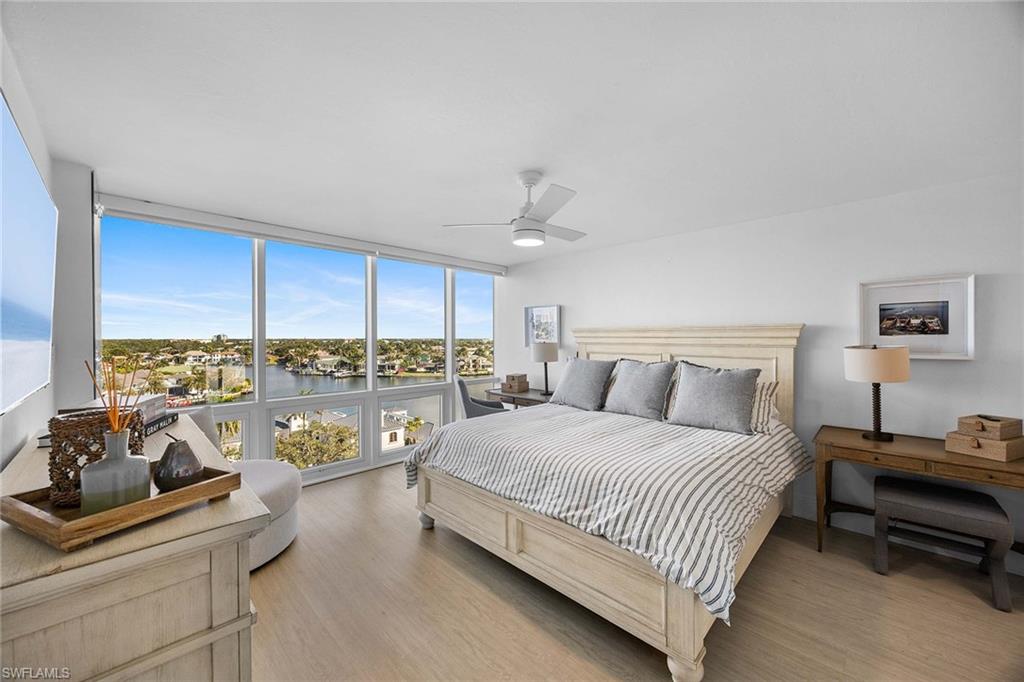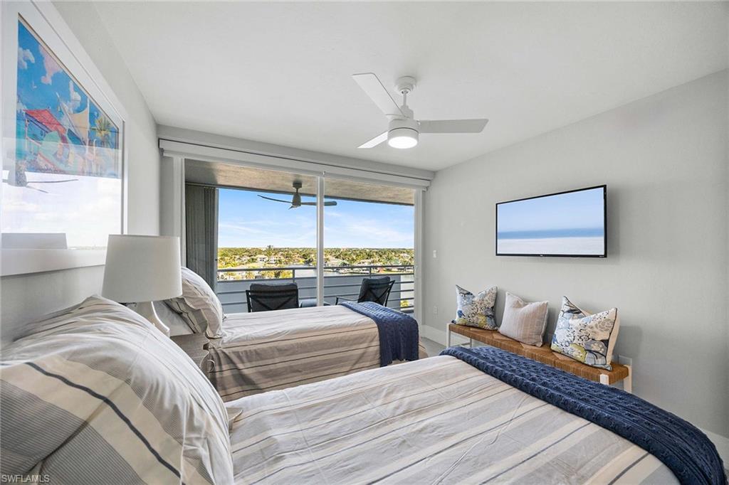 Enjoy Naples lifestyle from this beautifully updated, turnkey-furnished two-bedroom, two-bath residence at The Terraces in Park Shore. On the 9th floor with an eastern exposure, this home offers peaceful views over Venetian Bay. The open living and dining area is bright and inviting, framed by expansive floor-to-ceiling windows that fill the home with soft morning light. The custom kitchen features a bright, modern design with sleek finishes and beautiful cabinetry. The primary suite includes a spa-like bath with elegant touches, dual vanities and a spacious walk-in shower. A private lanai extends the living space outdoors, ideal for sunrise coffee or quiet evenings overlooking the water. Tasteful, coastal-inspired furnishings are the finishing touch for an effortless retreat. The Terraces offers direct beach access, along with a resort-style pool and spa, sauna, social spaces, guest suites, secured parking, 24-hour security and a pet-friendly environment. In the desired Park Shore neighborhood, you're near Venetian Village dining and boutiques, and just minutes from Waterside Shops and Old Naples. Boat slips and boat rentals are across the street.