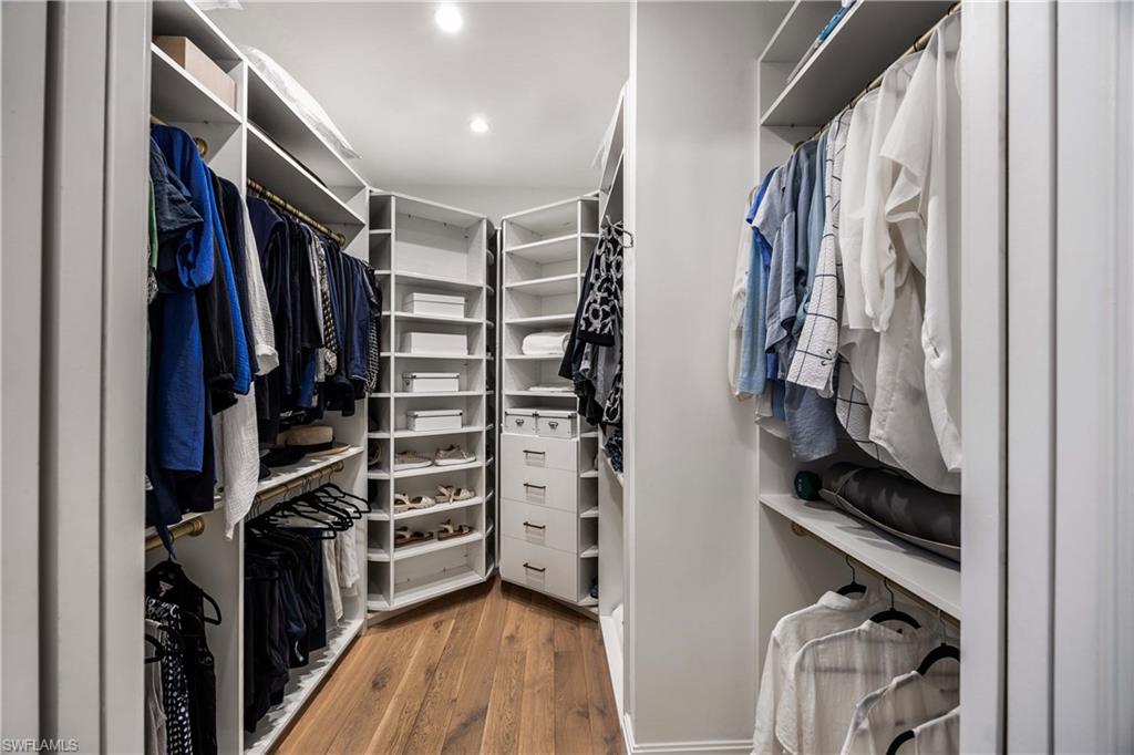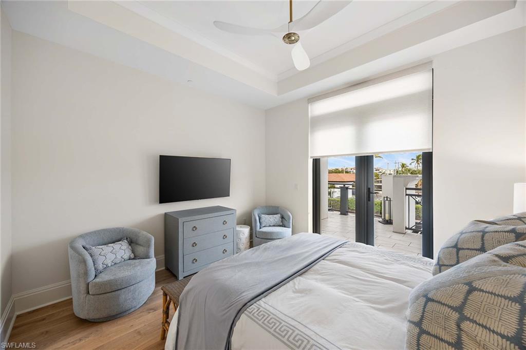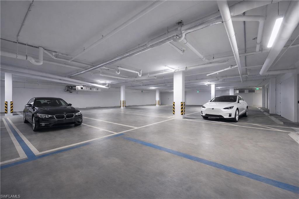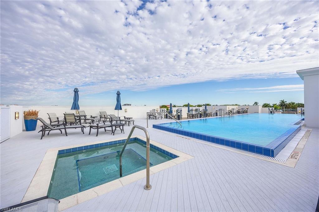Experience refined coastal living in the heart of downtown Naples, just one building from Fifth Avenue South. Enjoy the rare luxury of two dedicated parking spaces in the secure garage. The living area opens seamlessly to an exceptional 800-square-foot lanai -one of only two residences in the building to offer such an expansive outdoor living space— creating an effortless indoor-outdoor lifestyle. This sophisticated three-bedroom, three-and-a-half-bath residence offers an open, light-filled floor plan with Legno Bastone hardwood floors throughout. The chef's kitchen features premium Thermador appliances, Arctic white quartz countertops, and a generous center island ideal for entertaining. A custom-built-in banquet anchors the dining area, complemented by a wine refrigerator, dual refrigerator drawers, and bespoke cabinetry for serving and storage. The primary suite is a serene retreat with a custom walk-in closet featuring dual rotating shoe racks and a spa-inspired bath with dual vanities, soaking tub, and spacious walk-in shower. Residents enjoy a rooftop oasis with a pool and hot tub, lounge seating, shaded dining areas, and premium built-in grilling stations. Generator, 2 storage rooms.