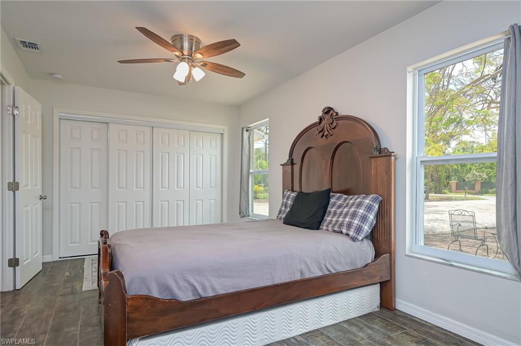This awesome Golden Gate Estates Naples property offers the perfect home of luxury, comfort, and convenience. This recently remodeled home has 3 bedrooms and 2 baths, has an open floor plan, and is perfect for entertaining. Featuring a new kitchen with granite countertops, new soft close cabinetry, stainless steel appliances, and porcelain tile floors. The home has impact windows and a new roof along with a new A/C system and a new state of the art reverse osmosis water system. Step outside to the covered lanai, perfect for enjoying the beautiful Florida weather year-round. The outdoor living space of 2.5 Acres includes a large wooded area with a large number of mature fruit trees you can enjoy. There is plenty of room for a pool and you can build a second home on the property! There is room for horses, cows, goats, and chickens! Located in a quiet and peaceful neighborhood, this property offers privacy and tranquility, while still being close to all the best that Naples has to offer. Just a short drive away, you'll find world-class dining, shopping, and entertainment, as well as the best beaches. With top-rated schools and an abundance of outdoor activities nearby.