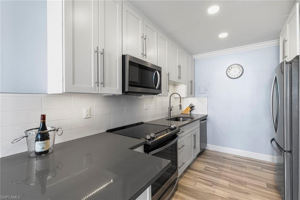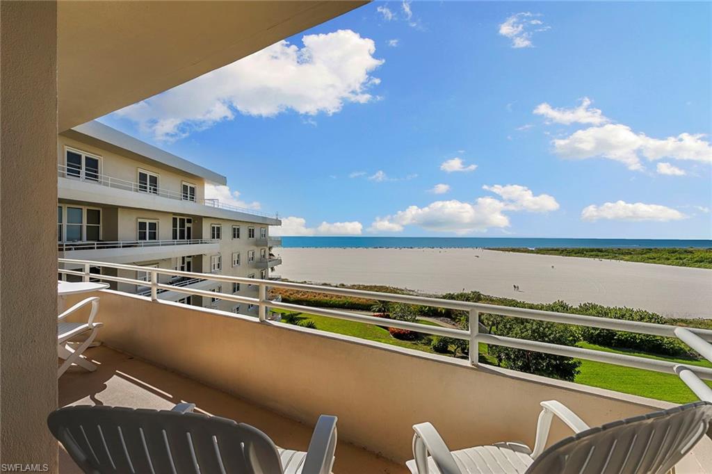 This charming and beautifully renovated original efficiency/studio unit has been thoughtfully transformed into a one-bedroom, one-bath retreat. The open private balcony invites you to relax and unwind while enjoying stunning sunsets throughout the year, accompanied by breathtaking Gulf and Beach views. Wood-like tile floors extend throughout the unit, creating a warm and inviting atmosphere. The functional kitchen is equipped with custom cabinetry for ample storage and convenience. The unit comes fully furnished and features impact glass windows and doors, ensuring comfort and peace of mind. An assigned carport and additional storage space are included for your convenience. Enjoy access to newly updated common areas such as a social room, heated pool, grilling area, laundry facilities and beach access. Building upgrades include new elevators, a new roof, shared storage on each floor, and on-site management for added ease and security. Experience the joy of living in paradise with all these exceptional features and amenities at your fingertips.