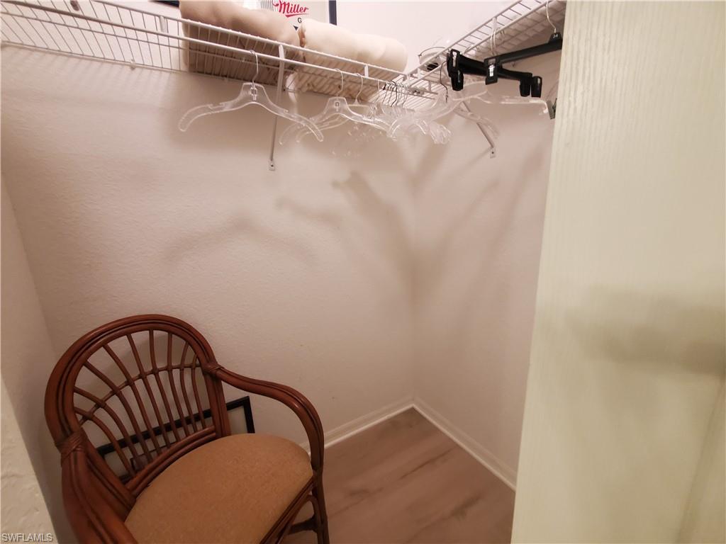 Stunning Sterling Greens move in ready condo with picture perfect views and FULL GOLF membership. Extra flex room model off kitchen used for office or breakfast area. Start days watching golfers- breathtaking PANORAMIC VIEWS of 17th fairway greens -- no buildings across only lush preserves. Private screened lanai with electric shutters for easy closing. WIDE-PLANK wood look luxury vinyl and TILE flows - no carpet. NEW FURNISHINGS remain if dered TO move right in! NEW DESIGNER LIGHTING. Kitchen has 42" CABINETS, updated NEW STAINLESS CONVECTION OVEN and microwave. WIDE OPEN breakfast bar to dining-living area —perfect for entertaining. Spacious primary suite has a door to the lanai and 2 walk-in closets. The split bedroom plan allows privacy for you and guests. Comes with your own locked STORAGE UNIT for bikes, beach chairs, Golf clubs, etc.. Trash shoot at elevator so easy disposal. Covered parking spot included, and option to buy vehicle. Community pool, BBQ, picnic tables, bike racks, neighbor socials. Near the Divot, with new state of the art full fitness, bocci, breakfast, lunch, bar. Clubhouse dining, bar, ping pong, billiards, library, card rooms, fire pit, golf simulation room,events. For active enthusiasts, enjoy golf leagues, lit Har-Tru Tennis, pro shop, lessons, fitness classes. All conveniences out front or back gates — just 4 mi to Olde Naples, white sand beaches, dining, shops, art, theater. Perfect Full or Part time, or Investor (renter Feb and March for automatic income). Don’t miss, beauty you'll love it!