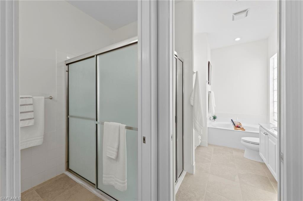 Situated on a quiet cul-de-sac in the highly sought-after Village Walk of Bonita Springs, this popular DiVosta-built Oakmont model is known for its exceptional quality, featuring poured concrete and steel-reinforced construction. A timeless floor plan offers an open, bright, and inviting layout with three bedrooms, two full baths, a den, a two-car garage, and a private saltwater pool and spa. Thoughtfully updated, the home showcases fresh exterior paint completed in January 2026, elegant wainscoting, custom built-ins throughout, plantation shutters, and a no-carpet interior. Tile flooring flows through the main living areas, while luxury vinyl flooring enhances the guest bedrooms. The spacious kitchen is well suited for everyday living and entertaining, featuring granite countertops, a marble tile backsplash, and newer stainless-steel appliances. A formal dining area and generous family room provide comfortable gathering spaces. The primary suite offers ample closet space with a custom built-in system and double sliding doors that open directly to the expansive lanai. The outdoor living area features a heated custom pool and spa with serene views overlooking the Venetian Bridges—an ideal setting for relaxation or entertaining. Village Walk residents enjoy an impressive array of resort-style amenities, including multiple pools, a fitness center, tennis, pickleball, bocce, two on-site restaurants, a gas station, car wash, and over five miles of scenic walking paths. Cable, internet, and fiber optics are included in the HOA fees. This well-maintained home is perfectly suited for year-round living or seasonal retreat in one of Bonita Springs’ most desirable communities.