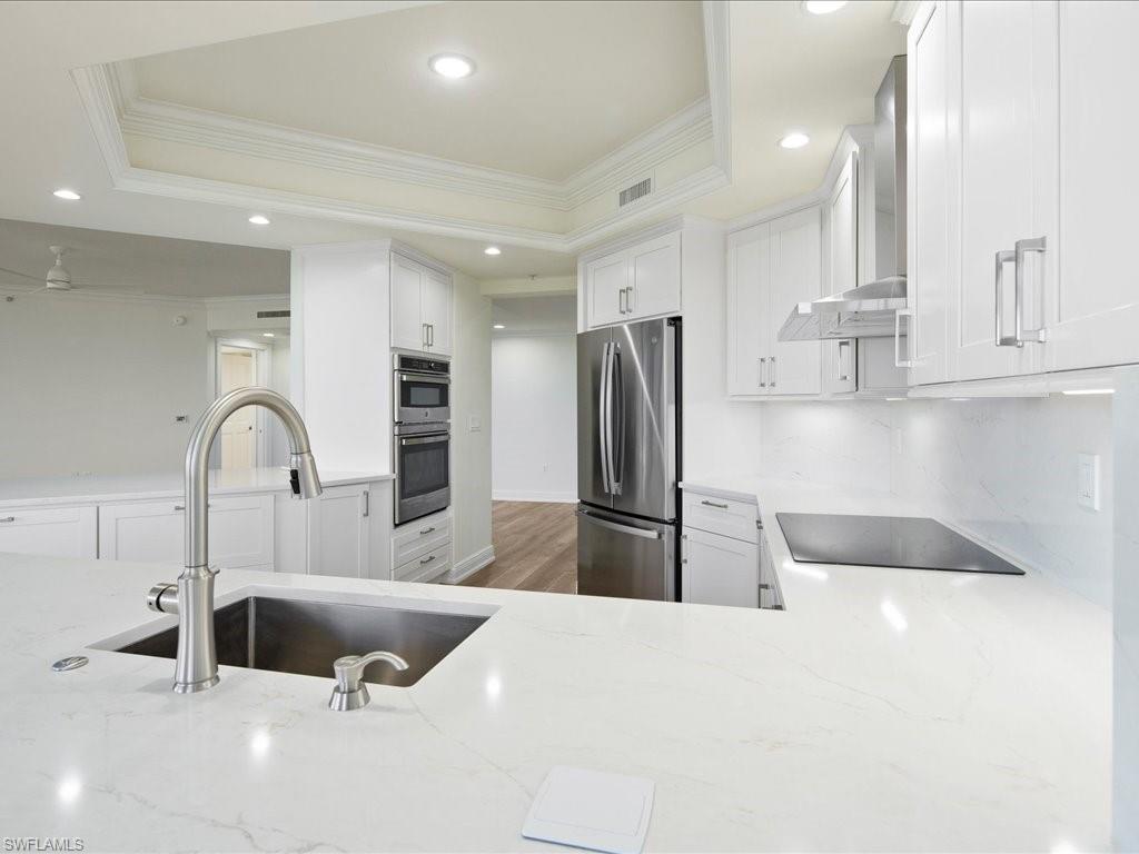 THIS CONDOMINIUM SOUNDS LIKE A DREAM COME TRUE. THE COMBINATION OF A REMODELED OPEN KITCHEN WITH NATURAL LIGHT, CUSTOM NEW STAINLESS APPLIANCES, AND IMPORTED QUARTZ COUNTERTOPS IS SURE TO IMPRESS. THE ATTENTION TO DETAIL WITH NEW FLOORING, PAINT, TRIM AND CROWN MOLDINGS ADDS A TOUCH OF ELEGANCE. THE LUXURIOUS PRIMARY SUITE WITH ITS DESIGNER BATH, SPACIOUS CLOSET, AND BEAUTIFUL GOLF COURSE VIEWS SEEMS LIKE A PERFECT RETREAT. ADDITIONALLY HAVING TWO BEDROOM SUITES, EACH WITH THEIR OWN BATHROOM AND LANAI ACCESS, IS A FANTASTIC FEATURE FOR GUESTS OR FAMILY MEMBERS. SIT ON THE SPACIOUS LANAI AND RELAX WHILE ENJOYING THE LUSH TROPICAL GOLF COURSE VIEWS, AND SERENITY. THE AVERSANA BUILDING IS LIKE LIVING IN A 5 STAR HOTEL, RICH WITH AMENITIES AND SHOWCASES A RITZY GLAMOUROUS LOBBY.