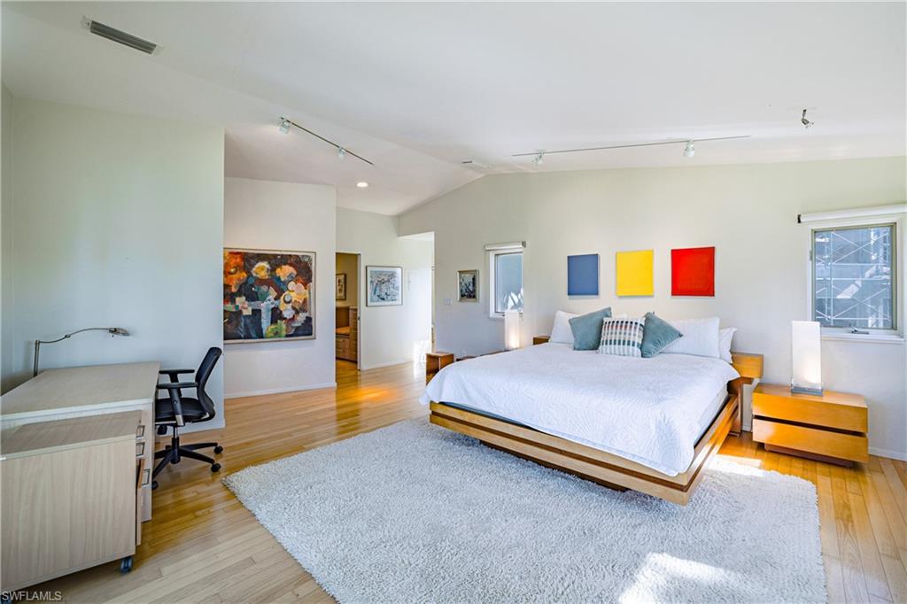 An extraordinary expression of architectural artistry, this three-bedroom, three-bath Park Shore residence was originally designed by acclaimed architect Andrea Clark Brown and has been masterfully reimagined with a bespoke interior by Geary Design. The result is a truly distinctive home that blends inspired creativity with timeless sophistication. Perfectly positioned to capture sweeping, tranquil lake views, the home is set on a lush, oversized lot framed by mature tropical landscaping, offering the privacy and serenity of a secluded oasis. Coveted southern exposure floods the interiors with natural light, drawing the eye outward to the shimmering water beyond and creating a seamless connection between indoor and outdoor living. Thoughtfully curated interiors feature a custom-designed chef’s kitchen, luxurious spa-like baths, and elegant hardwood and tile flooring, all designed to complement the home’s serene waterfront setting. The outdoor living space is equally compelling, highlighted by a resort-style pool and limestone sun deck overlooking the lake—an idyllic backdrop for both intimate moments and refined entertaining. Located in the prestigious Park Shore community, residents enjoy immediate access to pristine beaches, world-class shopping and dining, and the cultural allure of Artis–Naples. Rare, refined, and unmistakably unique, this exceptional lakefront residence offers an unparalleled opportunity to experience the very best of Southwest Florida living.