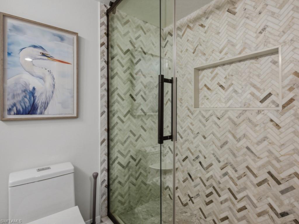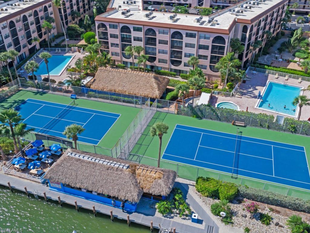 Recently remodeled and tastefully decorated, this waterfront two-bedroom residence offers full views of Factory Bay and the marina from a screened patio and expanded living area. The home features plank-style laminate flooring, Pompeii Quartz countertops, a large breakfast bar, and an open-concept layout ideal for entertaining. The kitchen has been upgraded with new stainless steel appliances and a wine cooler, and the condo also includes newly installed impact windows and impact sliding glass doors, providing comfort, energy efficiency, and peace of mind. Anglers Cove is a boating community with dock lease availability and fast, direct Gulf access. Resort-style amenities include two heated pools, two spas, tennis courts, and the popular Dolphin Tiki waterfront restaurant. The community has been recently painted and is beautifully maintained. Weekly rentals allowed Excellent opportunity for a waterfront two-bedroom Cable, electric, water, and sewer are included in the $722/month maintenance fee