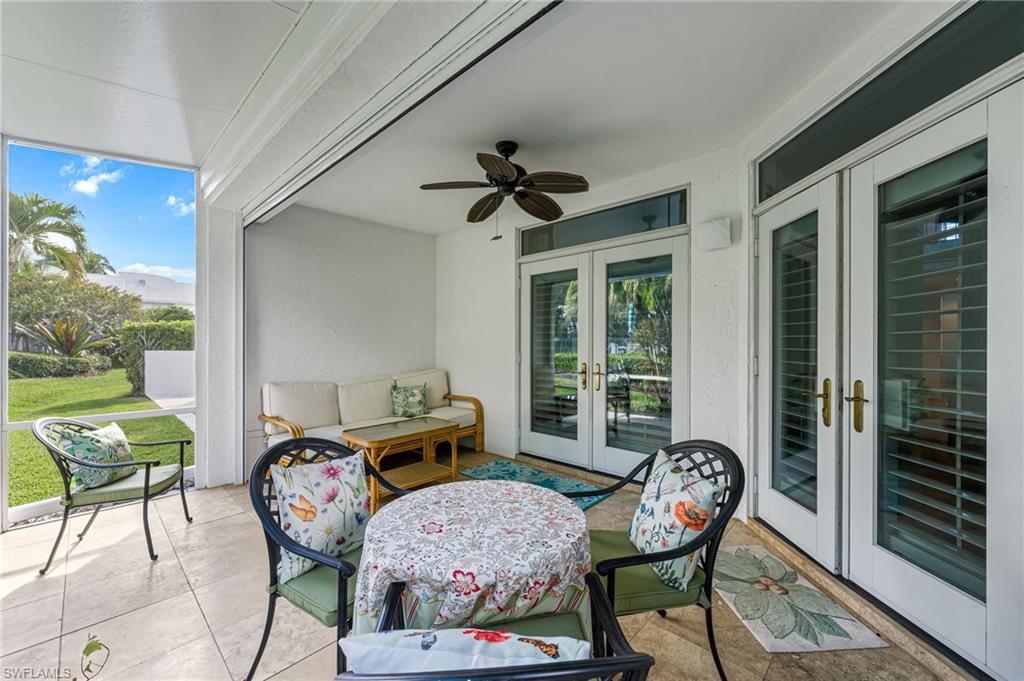 Welcome to this stunning "West Indies" style home, ideally located in the heart of Naples. This spacious townhome offers perfect blend of luxurious living and coastal charm, making it an ideal retreat for families or those seeking a tranquil lifestyle. This home boasts 4 well-appointed bedrooms including a generous master suite located on first floor. There is also a guest bedroom on 1st floor as well as another full bath near by. Great spot for an office with many windows for Florida's natural sunlight to shine in. This layout ensures that everyone has their own private sanctuary to relax and unwind. The kitchen is perfect for the gourmet chef in your household and fully equipped with high end stainless appliances which include a subzero refrigerator, separate freezer and ample quartz counters. Laundry room is convenient to kitchen. The living room is spacious, volume ceiling and French doors leading to the large screened lanai which has electric hurricane shutter to protect your outside furnishings. Easy living! Upstairs has 2 full bedrooms as well as a Den space, lots of windows, full bathroom. Privacy for guests and or office space. Community Pool is just steps away, Short Walk to Park Shore's sandy beaches. Private Park Shore Beach access is available with membership, and Venetian Village shops and restaurants are close by. This rarely available home is offered turnkey furnished.