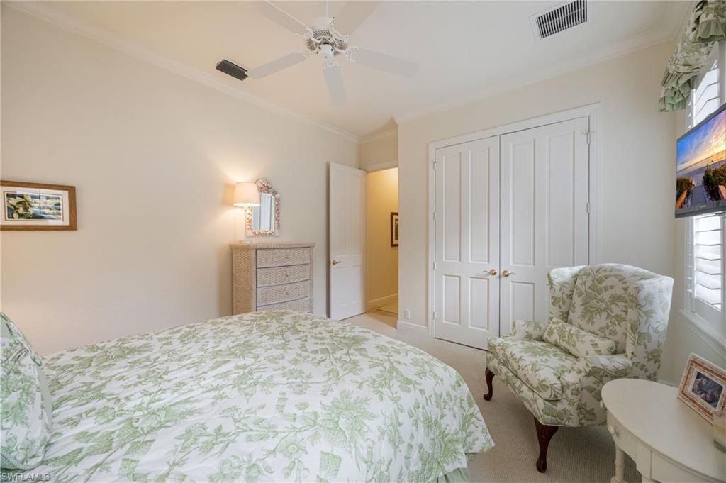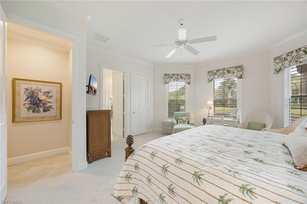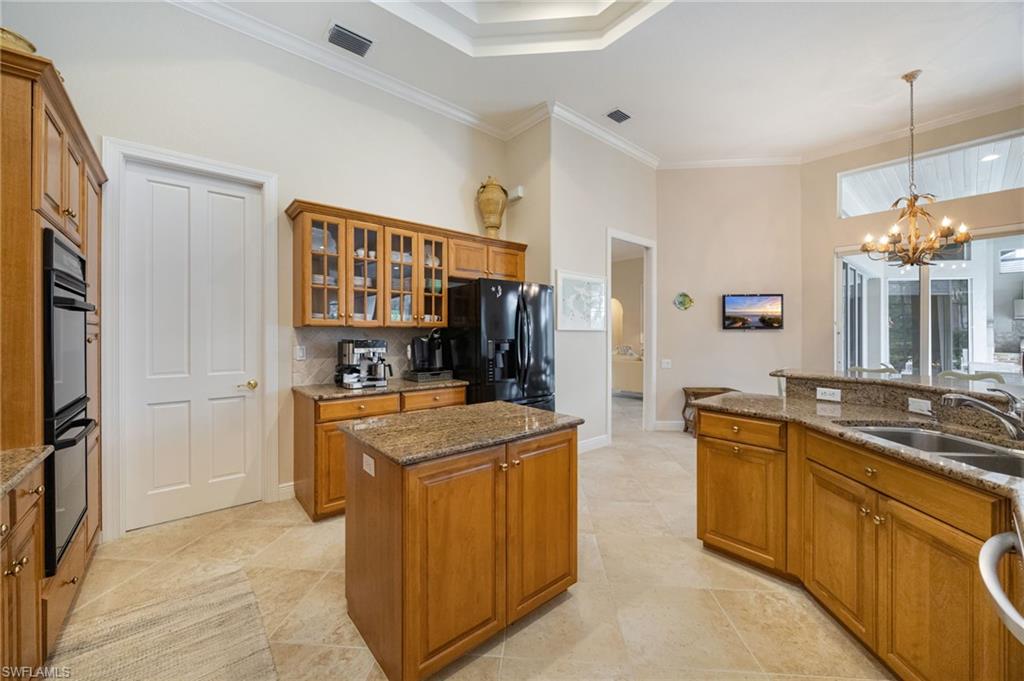 Beautifully sited on a scenic lake lot, this expansive residence in Pelican Marsh offers a refined blend of classic elegance, thoughtful design, and exceptional indoor-outdoor living. An Arthur Rutenberg built classic Floridian styled home. A covered front entry with double leaded-glass doors opens to a welcoming foyer with diagonal tile flooring, crown molding, and graceful architectural details that continue throughout the home. The well-designed floor plan features formal living and dining spaces, a spacious family room with a custom fireplace and built-in niches, and an impressive den or office with inlaid wood floors, custom cabinetry, tray ceiling, and accent lighting. The gourmet kitchen is both functional and inviting, highlights include granite countertops, stone backsplash, center island, breakfast bar, glass-front display cabinetry, double ovens, five-burner cooktop, and a sunny breakfast nook with lanai access. Multiple sliding doors connect the main living areas to the expansively covered lanai, creating a seamless flow for entertaining. The owner’s suite is a tranquil retreat with a sitting area, plantation shutters, walk-in closets, and private access to the lanai, while the spa-style bath offers dual vanities, soaking tub, walk-in shower, and private water closet. Three additional guest suites provide comfort and privacy, including a generous cabana suite with direct pool access and en-suite bath. Outdoors, the screened lanai is designed for year-round enjoyment with a custom built-in grill that has stacked stone accents, Pecky cypress ceiling, remote-controlled screens, and ample covered dining and lounge areas, all overlooking the pool, sun deck, lush landscaping, and peaceful lake views. Additional highlights include a side-entry two-car garage with epoxy flooring and storage systems, governor’s driveway, State of the art new HVAC systems -8/25, Squared off columns around lanai-as well as electric storm screens around entire covered lanai space, Front elevation updated to include squared off columns, Bermuda styled window shutters and bricked walkways around the side yard, updated roof, and beautifully maintained grounds. Pelican Marsh is one of North Naples’ most sought-after communities, spanning over 2,000 acres with 133 acres of natural preserves and offering an exceptional lifestyle centered around its championship golf course, tennis and pickleball facilities, bocce, state-of-the-art fitness center, spa services, and a vibrant community center with social and cultural programming. Ideally located just minutes from Mercato, Waterside Shops, and Naples’ renowned dining and entertainment, residents also enjoy proximity to sunny white-sand Gulf beaches, making this home a perfect blend of privacy, convenience, and resort-style living.