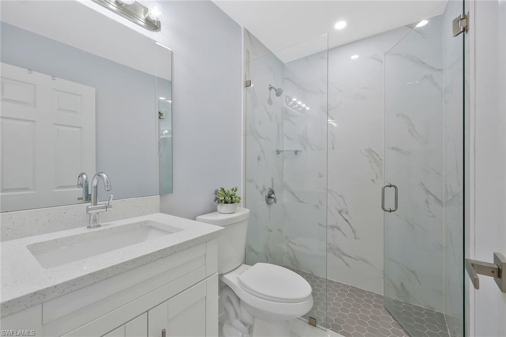 Set behind a gated entrance on 1.13 fenced acres, this beautifully renovated home offers a rare blend of value, modern style, privacy, and freedom in Golden Gate Estates. Located on White Blvd just east of Collier Blvd, the setting is immersed in nature while remaining close to everyday conveniences. The open kitchen anchors the home, featuring quartz countertops, a large center island, shaker cabinetry in soft coastal tones, stainless appliances, designer lighting, and a striking glass tile backsplash. Tile throughout, the space flows effortlessly for gathering, entertaining, or quiet mornings at home. Bathrooms have been fully updated with clean modern finishes, frameless glass showers, large format tile, and sleek vanities. A long private drive leads to a generous cleared yard framed by mature trees, offering endless possibilities for a pool, guest house, workshop, or simply room to breathe. The fenced acreage provides both privacy and flexibility rarely found this close to town. No HOA. No restrictions. Close to excellent schools, Founders Square, and major corridors. A move-in ready acreage home that delivers both style and space in a location that truly works.
